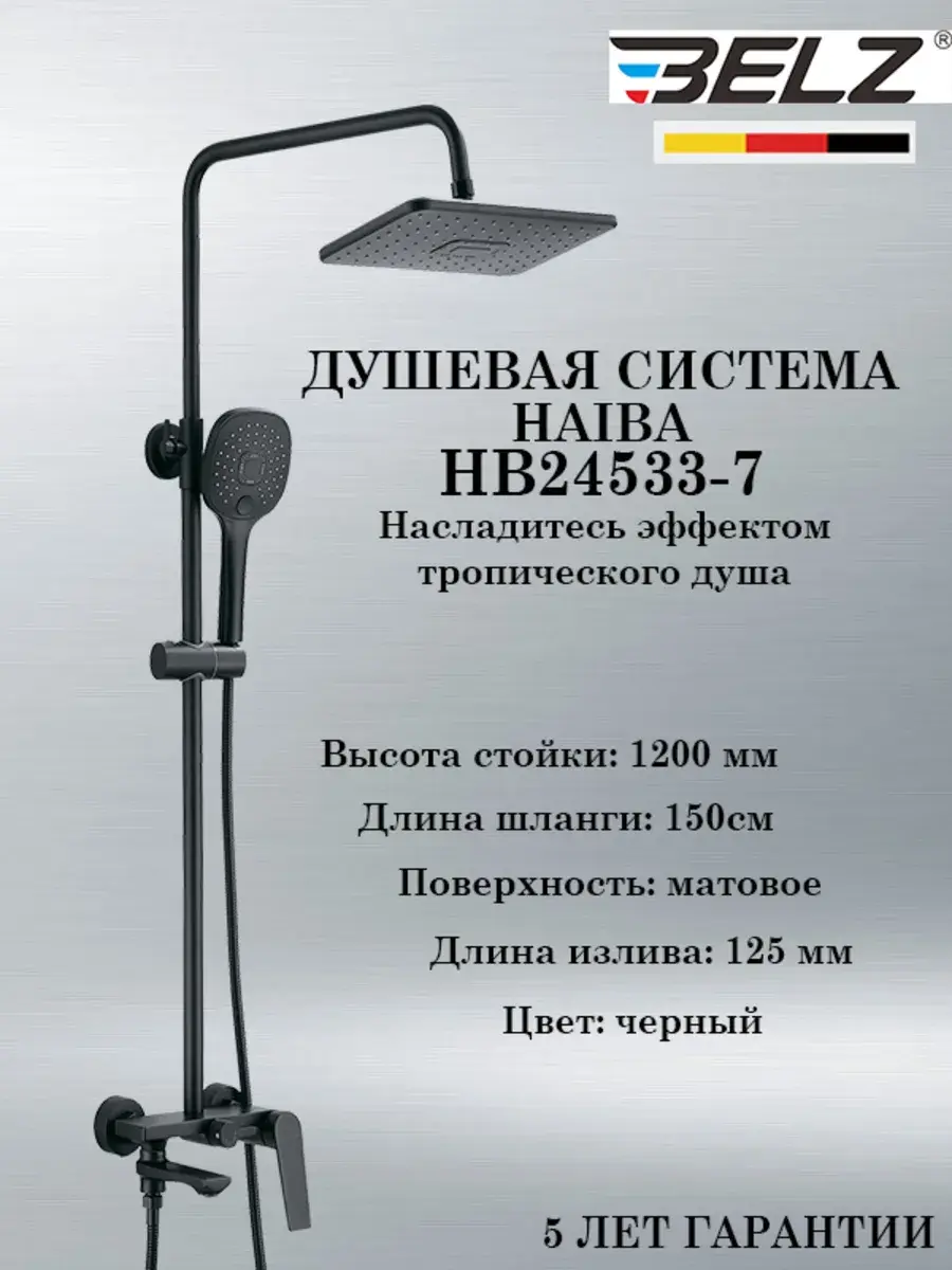 Душевая система B24533-7 в черном цвете от BELZ представляет собой комфортное и стильное решение для вашей ванной комнаты. Эта система оснащена тропическим душевым головным устройством, обеспечивающим мощный и равномерный поток воды, создавая ощущение тропического ливня. Матовое покрытие добавляет изделию элегантности и легкость в уходе. Шланги и штанги изготовлены из качественной латуни и abs-пластика, что гарантирует долговечность и надежность. Управление системой механическое, что обеспечивает удобство использования. С длиной шланга 150 см и штанги 120 см, система B24533-7 от BELZ подходит для различных размеров ванных комнат. Включает в себя 3 режима работы, позволяя выбирать наиболее подходящий для вашего настроения. Несмотря на отсутствие мыльницы, этот набор является идеальным выбором для тех, кто ценит качество и стиль. Имеется официальный выездной сервис по всей России, гарантия от производителя 5 лет на корпус и 1 год на комплектующие.