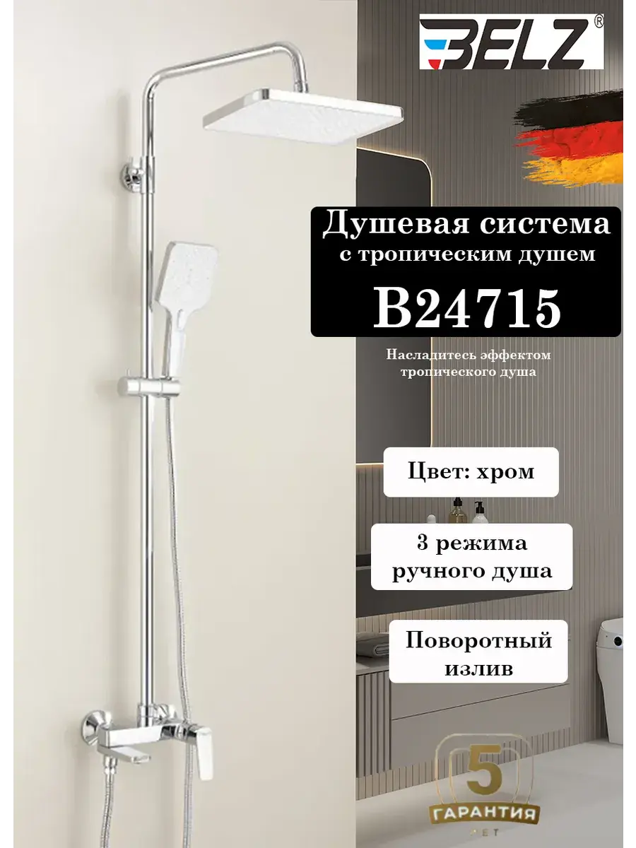 Душевая система B24715 от BELZ представляет собой комфортное и стильное решение для вашей ванной комнаты. Эта система оснащена тропическим душевым головным устройством, обеспечивающим мощный и равномерный поток воды, создавая ощущение тропического ливня. Хромированное покрытие добавляет изделию элегантности и легкость в уходе. Шланги и штанги изготовлены из качественной латуни и abs-пластика, что гарантирует долговечность и надежность. Управление системой механическое, что обеспечивает удобство использования. С длиной шланга 150 см и штанги 150 см, система B24715 от BELZ подходит для различных размеров ванных комнат. Включает в себя 3 режима работы, позволяя выбирать наиболее подходящий для вашего настроения. Несмотря на отсутствие мыльницы, этот набор является идеальным выбором для тех, кто ценит качество и стиль. Имеется официальный выездной сервис по всей России, гарантия от производителя 5 лет на корпус и 1 год на комплектующие.