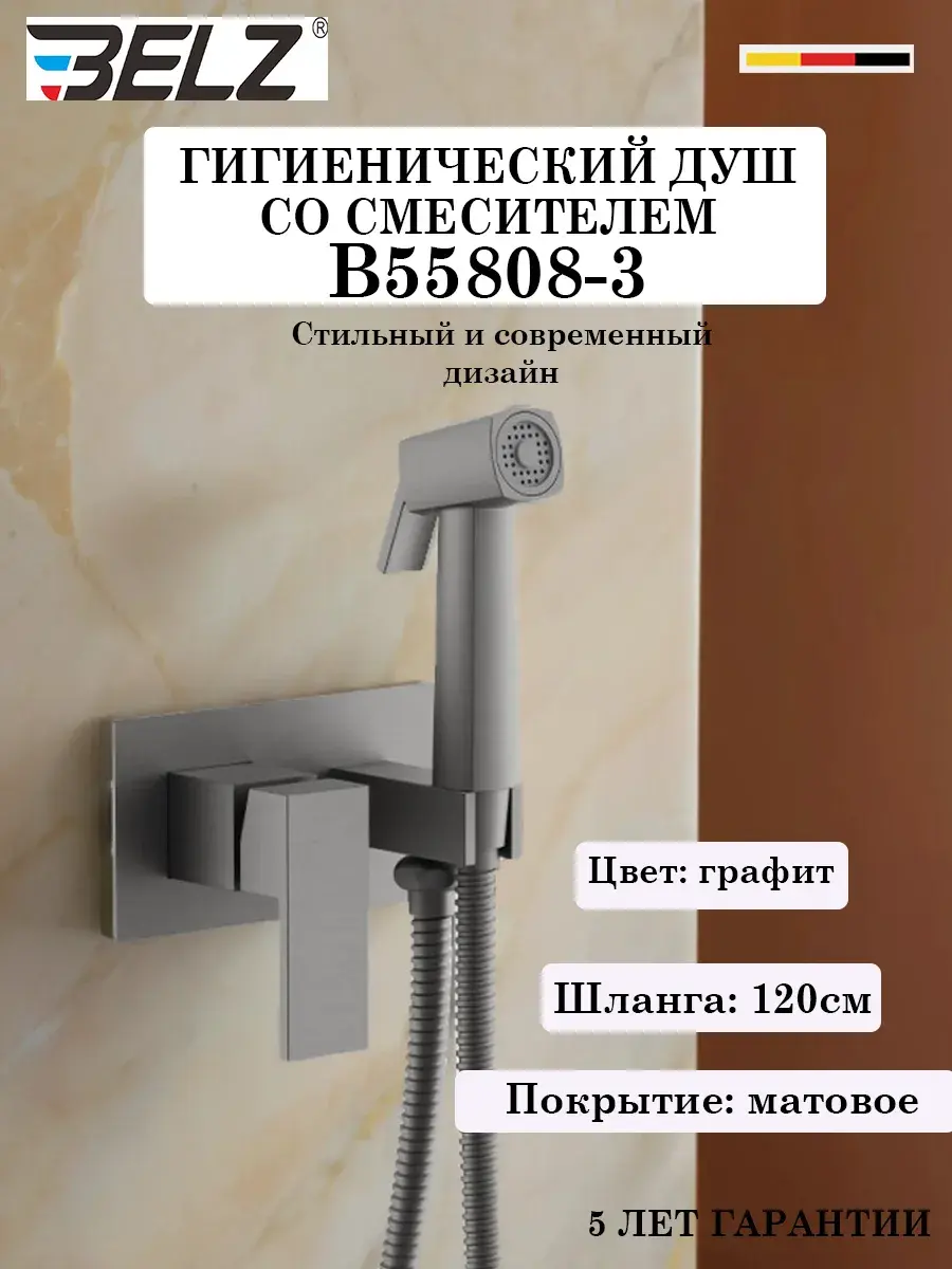 Гигиенический душ B55808-3 от BELZ – это отличное решение для обеспечения чистоты и удобства в вашем доме. Этот смеситель с душевым гарнитуром идеально подходит для использования в ванной комнате, на кухне или в туалете. Благодаря керамическому картриджу запорного клапана и защите от обратного потока, вы можете быть уверены в надежности и долговечности данного устройства.