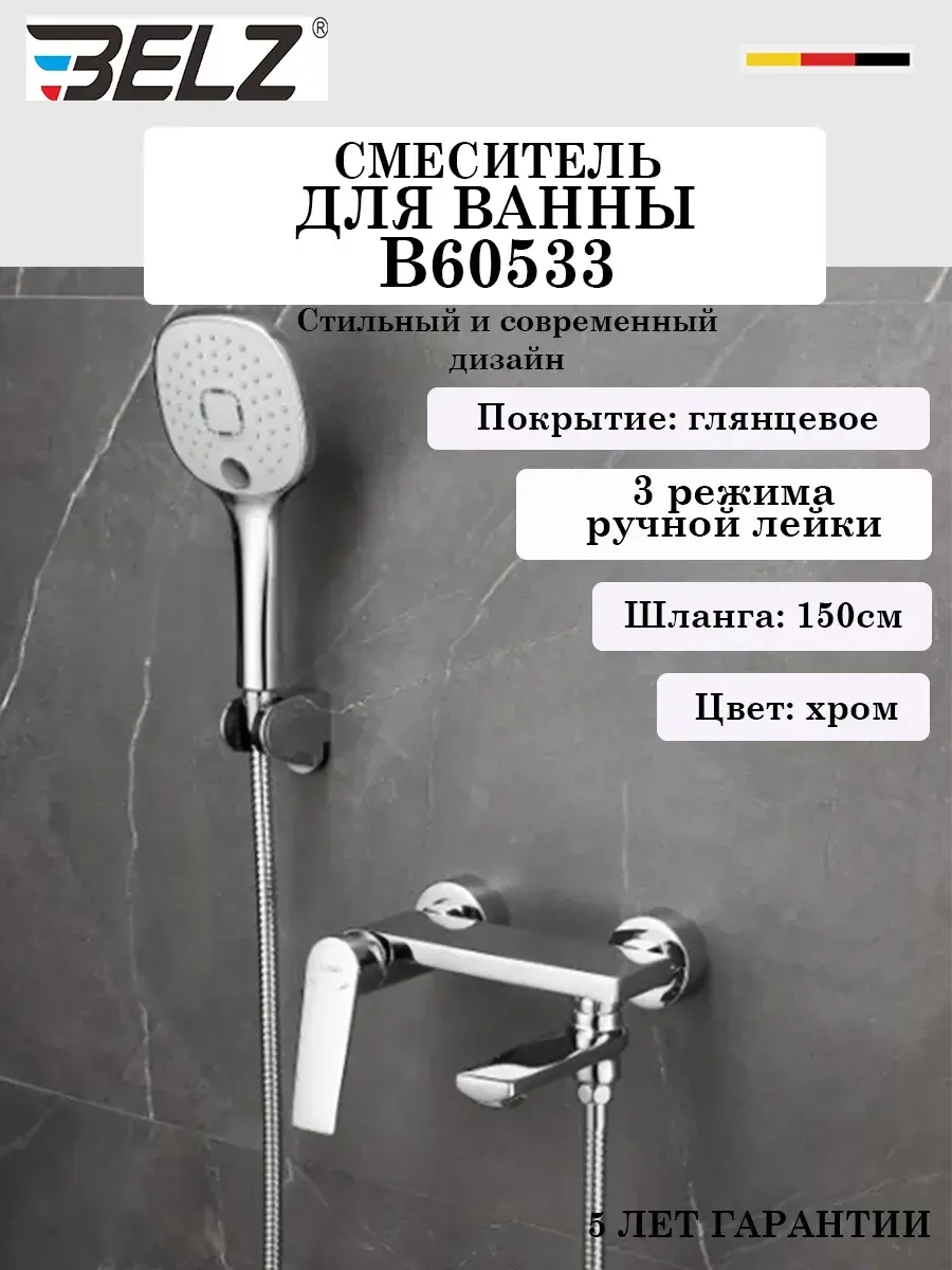 Смеситель для ванны Belz B60533 в хромированном цвете - это современное сантехническое решение с элегантным дизайном и рычажным управлением. Модель оснащена керамическим картриджем для точного контроля температуры и напора воды. Смеситель предназначен для настенного монтажа на два отверстия с жесткой подводкой 1/2". Благодаря своему современному дизайну и универсальному назначению, эта модель станет стильным и функциональным дополнением любой ванной комнаты.