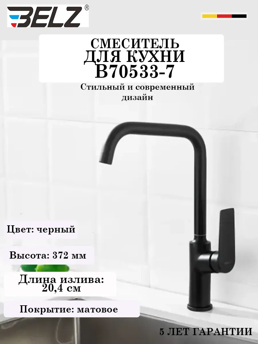 Смеситель для кухни BELZ B70533-7– это стильное и функциональное решение для вашего кухонного пространства. Изготовленный из прочной латуни, он отличается высокой надежностью и долгим сроком службы. Однорычажный механизм управления позволяет легко регулировать температуру и напор воды, а керамический картридж гарантирует плавность хода и точность настройки. Стационарный излив с длиной 22.7 см и высотой 37.2 см обеспечивает комфортное использование раковины. Смеситель BELZ B70533-7 оснащен защитой от обратного потока, что гарантирует безопасность и гигиеничность использования. Его лаконичный дизайн и универсальный цвет идеально впишутся в любой интерьер. Вертикальный способ монтажа и крепление на шпильку с гайкой обеспечивают простую и надежную установку на раковину или столешницу. BELZ B70533-7 – это оптимальное сочетание качества, функциональности и современного дизайна, которое сделает ваш быт более комфортным.