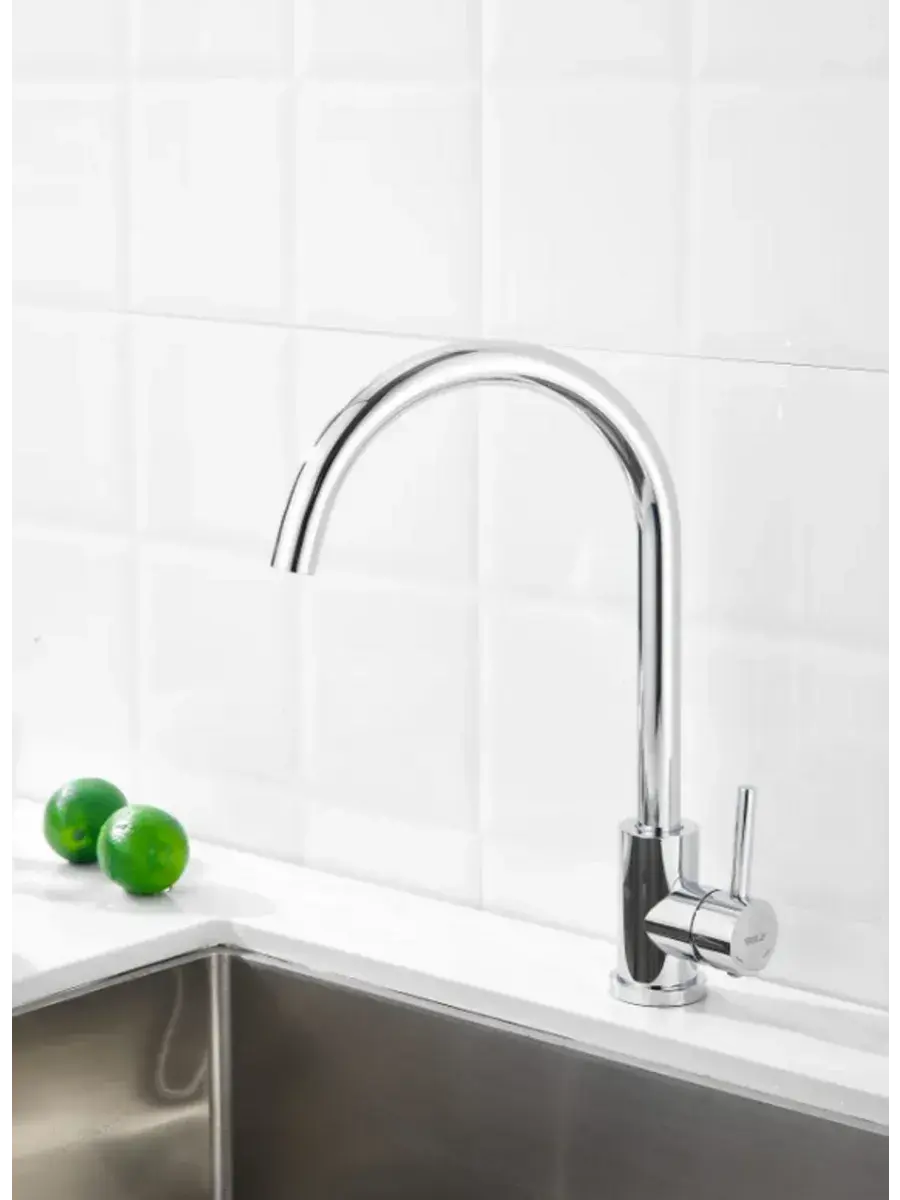 Смеситель для кухни с высоким поворотным изливом, произведен из высококачественной нержавеющей стали, соответствующей нормам ГОСТ и СанПин, что обеспечивает длительный срок службы и безопасность применения. Этот смеситель для мойки обладает стильным и современным дизайном с матовым покрытием, придающим кухне чистоту и элегантность. Изготовленный из прочной нержавеющей стали, он не только долговечен, но и устойчив к коррозии и механическим повреждениям. Смеситель легко устанавливается и подходит для большинства кухонных моек. Его лаконичный, но при этом привлекательный дизайн впишется в любой интерьер, будь то современная кухня или более классические варианты. Если вы хотите сделать свой кухонный процесс более удобным и приятным, этот смеситель станет оптимальным выбором для вас.