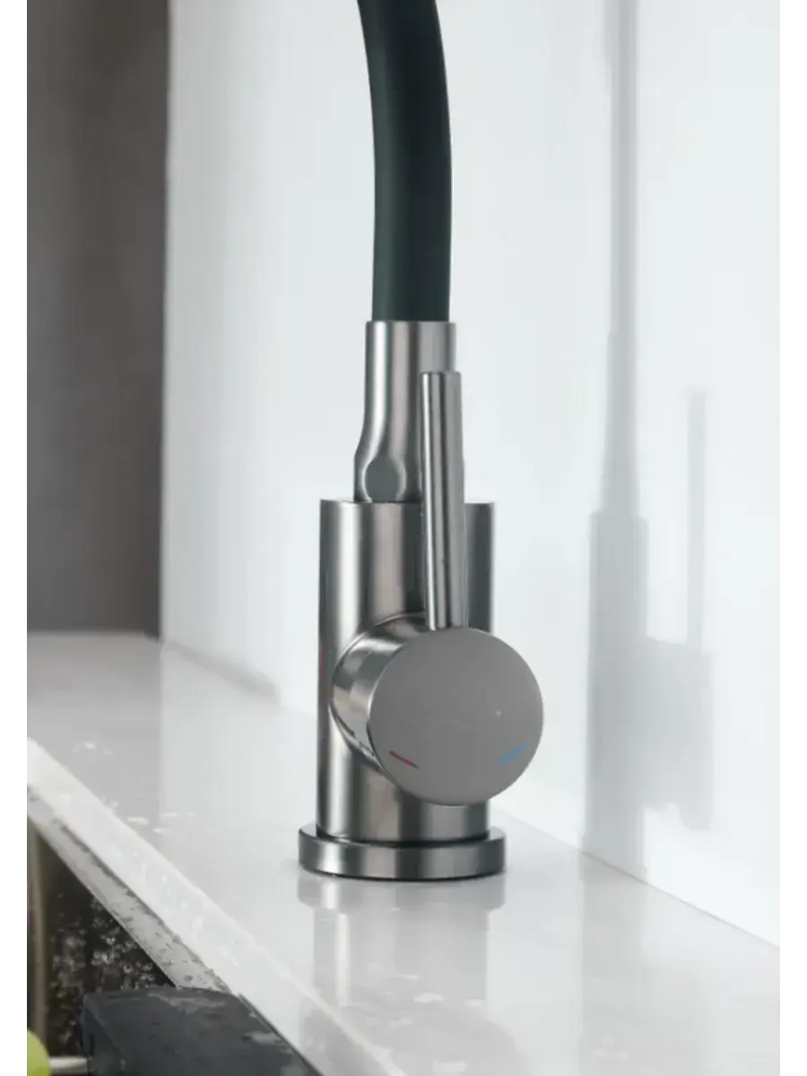 Смеситель из нержавеющей стали для кухни с гибким изливом BELZ – это идеальное решение для современных кухонь, где важна не только функциональность, но и стильный дизайн. Уникальный матовый цвет придаст вашему интерьеру элегантность и современный вид. Этот смеситель не только отлично впишется в любой кухонный ансамбль, но и станет надежным помощником в приготовлении пищи и уходе за кухонными принадлежностями.