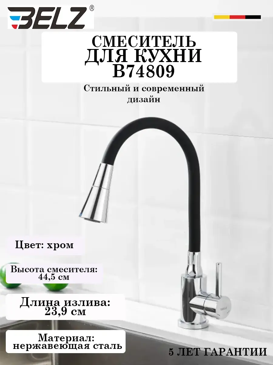 Смеситель из нержавеющей стали для кухни с гибким изливом BELZ – это идеальное решение для современных кухонь, где важна не только функциональность, но и стильный дизайн. Уникальный матовый цвет придаст вашему интерьеру элегантность и современный вид. Этот смеситель не только отлично впишется в любой кухонный ансамбль, но и станет надежным помощником в приготовлении пищи и уходе за кухонными принадлежностями.