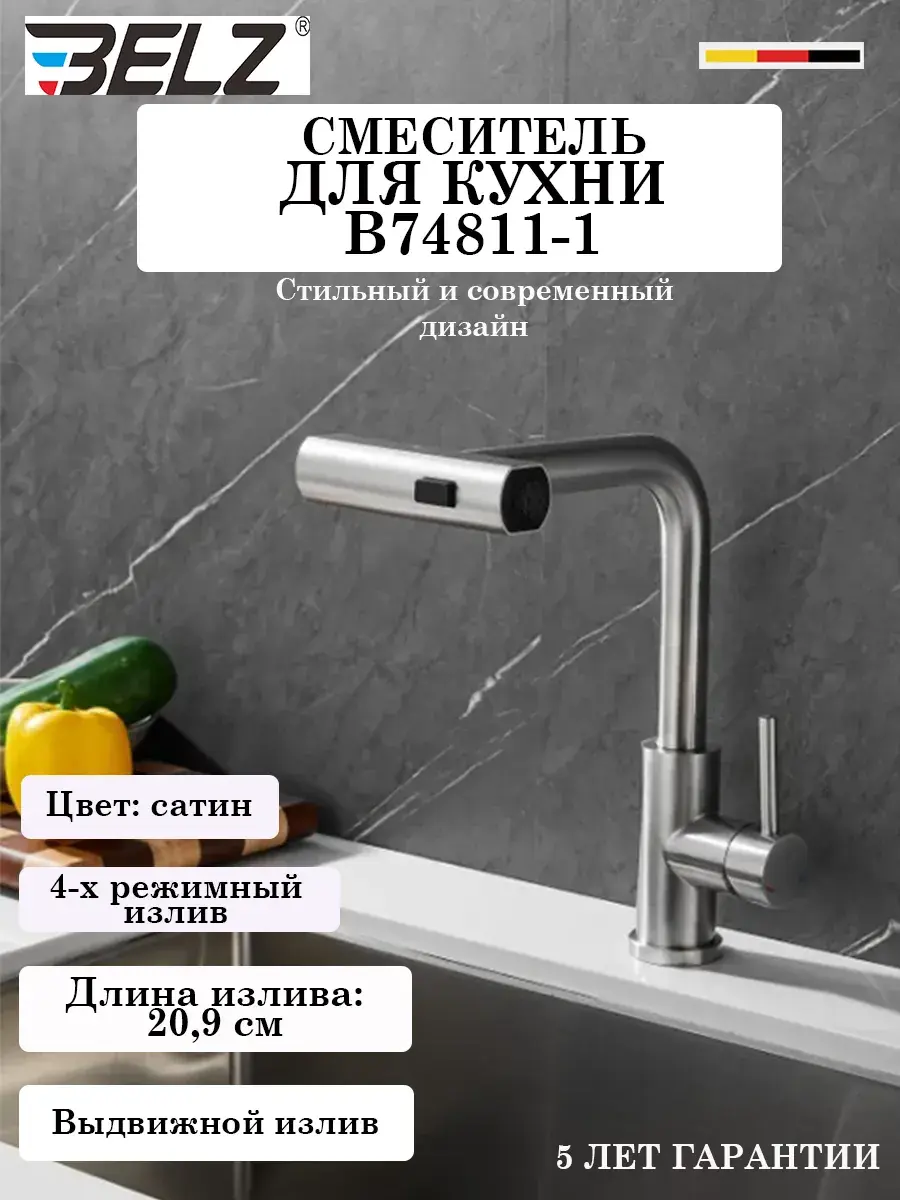 Смеситель легко устанавливается и подходит для большинства кухонных моек. Его лаконичный, но при этом привлекательный дизайн впишется в любой интерьер, будь то современная кухня или более классические варианты. Если вы хотите сделать свой кухонный процесс более удобным и приятным, этот смеситель станет оптимальным выбором для вас. На смеситель Belz распространяется гарантия 5 лет.