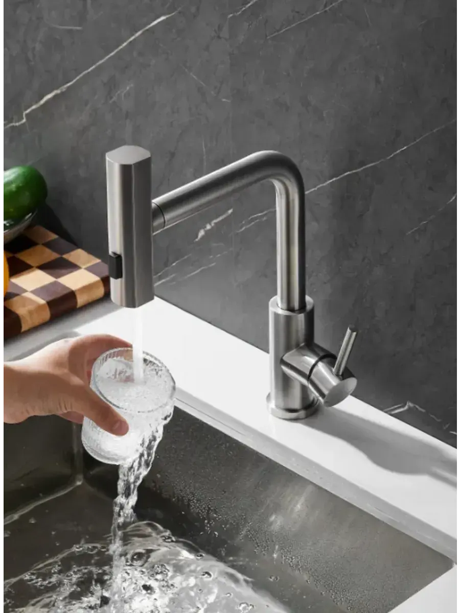 Дополнительным преимуществом является возможность подключения фильтра, что обеспечивает чистую и безопасную воду прямо из крана, избавляя вас от необходимости в использовании бутылей. Этот выдвижной смеситель для кухни станет отличным помощником в каждом доме, сочетая в себе стиль и многофункциональность.