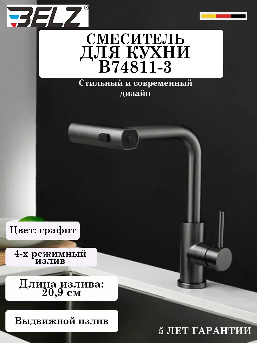 Смеситель легко устанавливается и подходит для большинства кухонных моек. Его лаконичный, но при этом привлекательный дизайн впишется в любой интерьер, будь то современная кухня или более классические варианты. Если вы хотите сделать свой кухонный процесс более удобным и приятным, этот смеситель станет оптимальным выбором для вас. На смеситель Belz распространяется гарантия 5 лет.