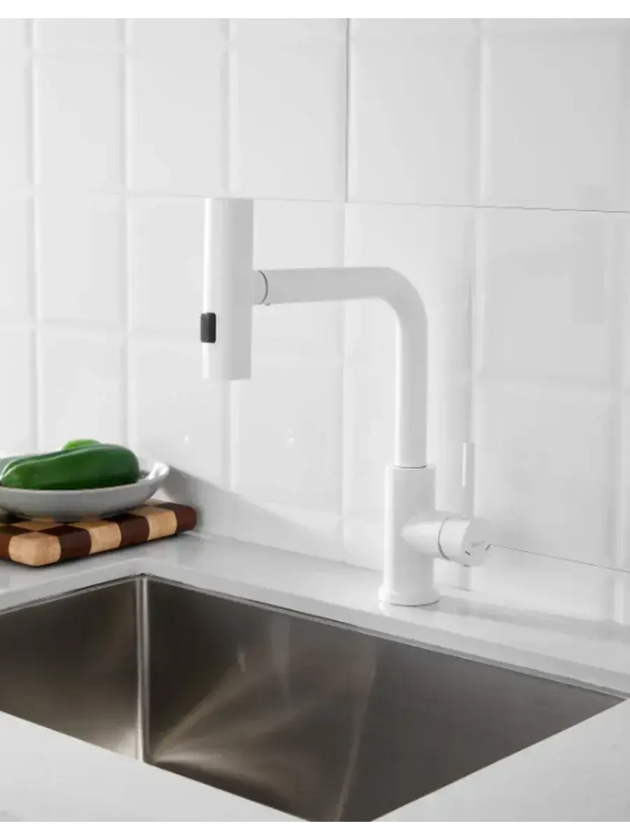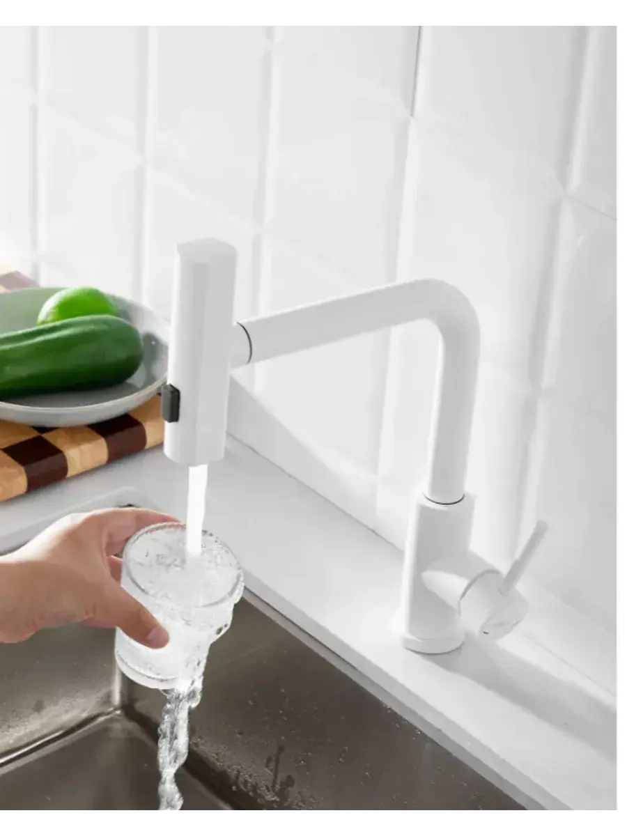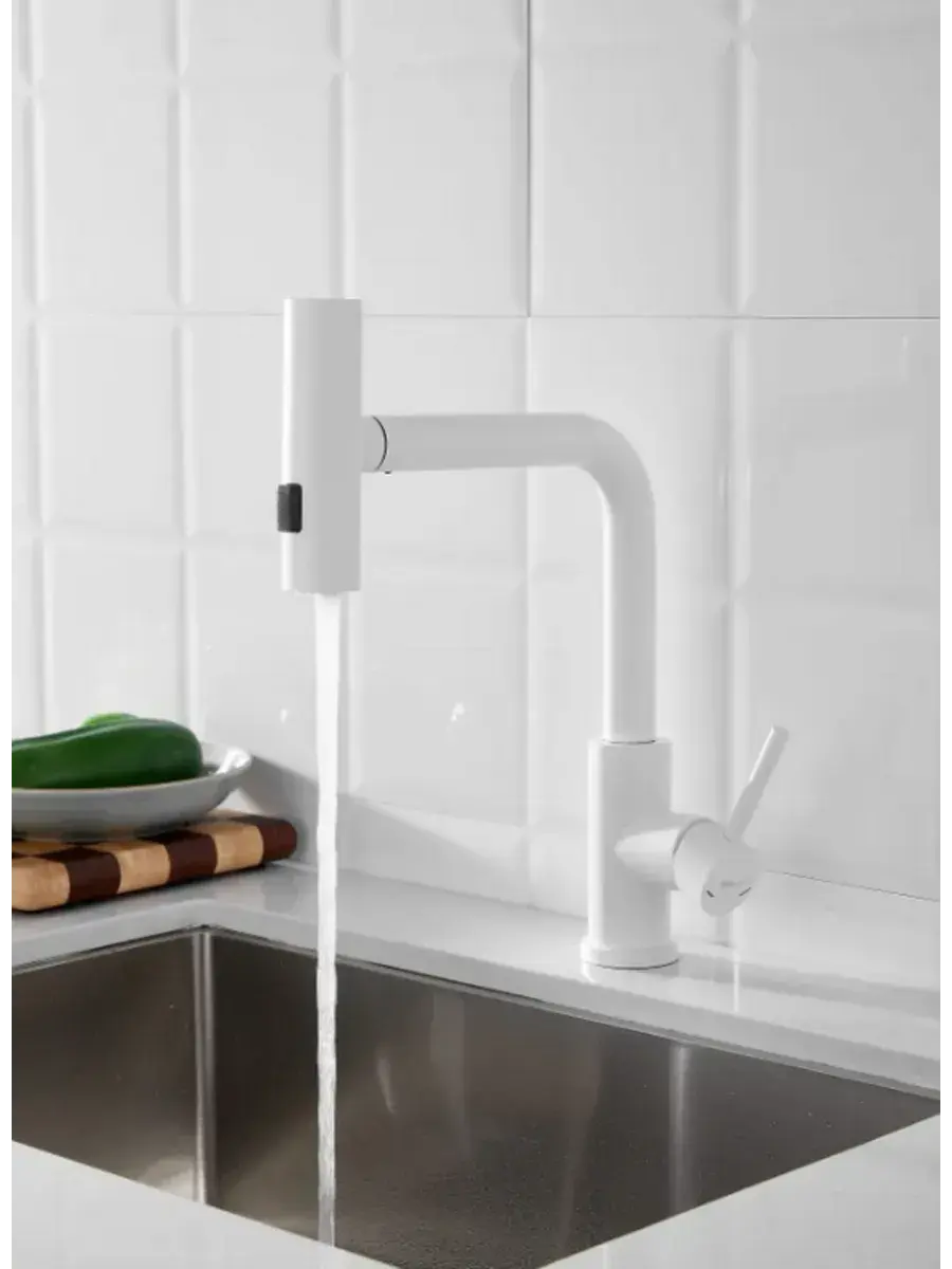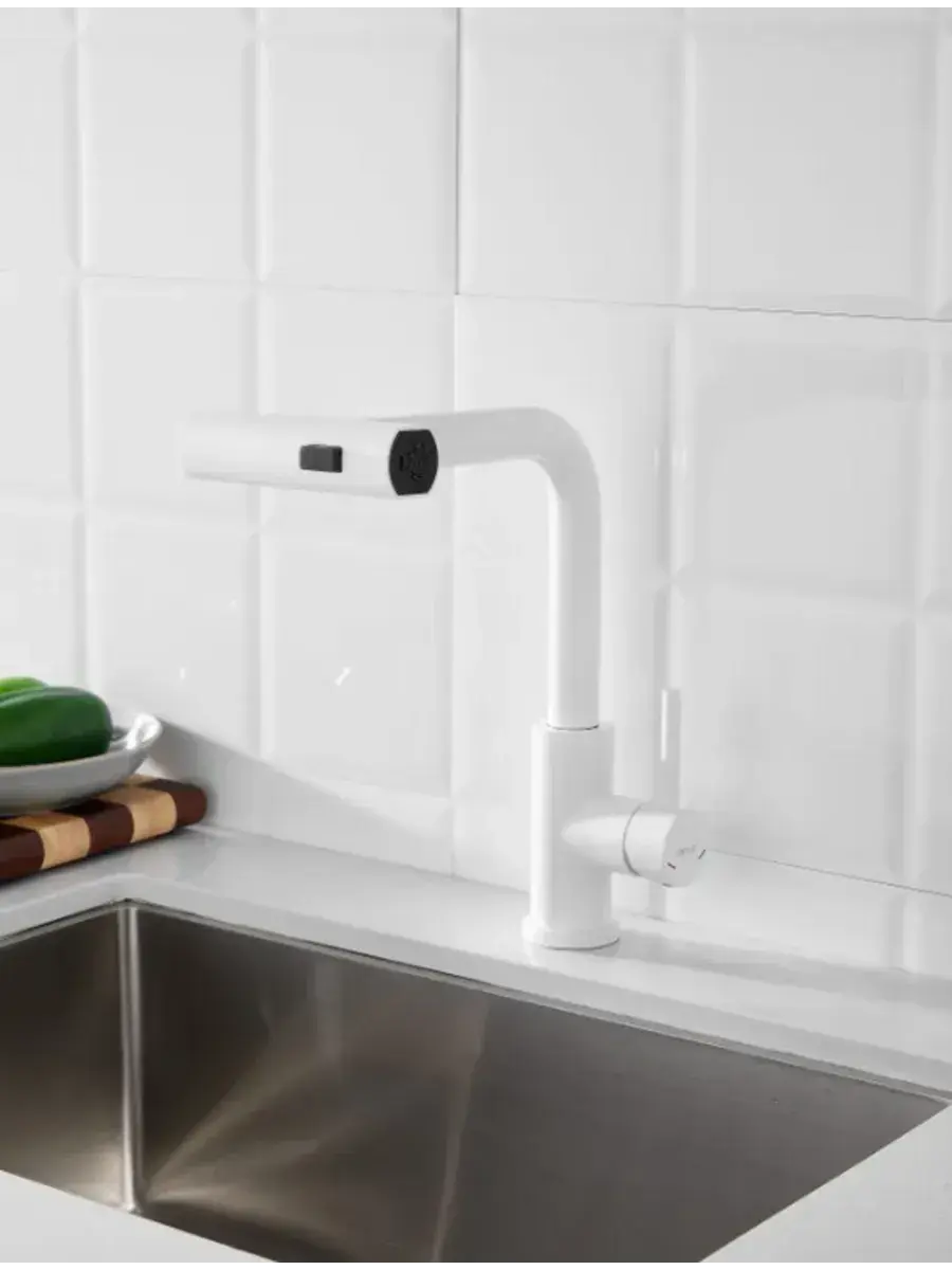 Представляем вашему вниманию смеситель для кухни с 4х-режимной выдвижной лейкой, который идеально дополнит вашу кухонную обстановку. Этот смеситель для мойки обладает стильным и современным дизайном с белым матовым покрытием, придающим кабинету чистоту и элегантность. Изготовленный из прочной нержавеющей стали, он не только долговечен, но и устойчив к коррозии и механическим повреждениям.