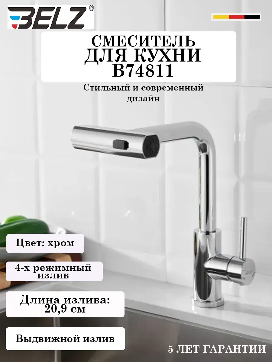Смеситель легко устанавливается и подходит для большинства кухонных моек. Его лаконичный, но при этом привлекательный дизайн впишется в любой интерьер, будь то современная кухня или более классические варианты. Если вы хотите сделать свой кухонный процесс более удобным и приятным, этот смеситель станет оптимальным выбором для вас. На смеситель Belz распространяется гарантия 5 лет.
