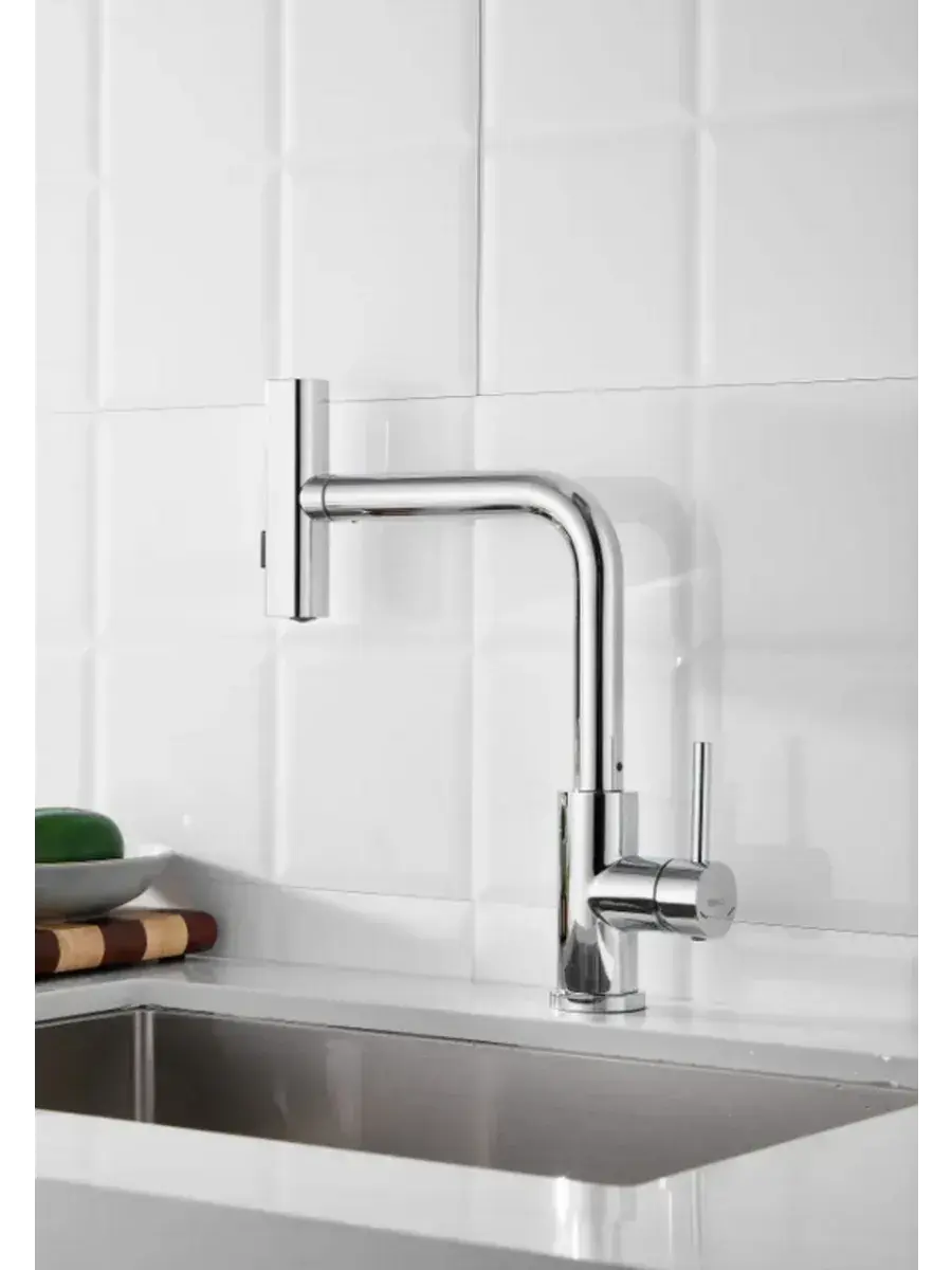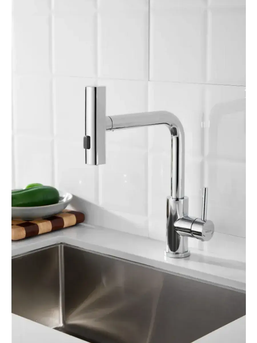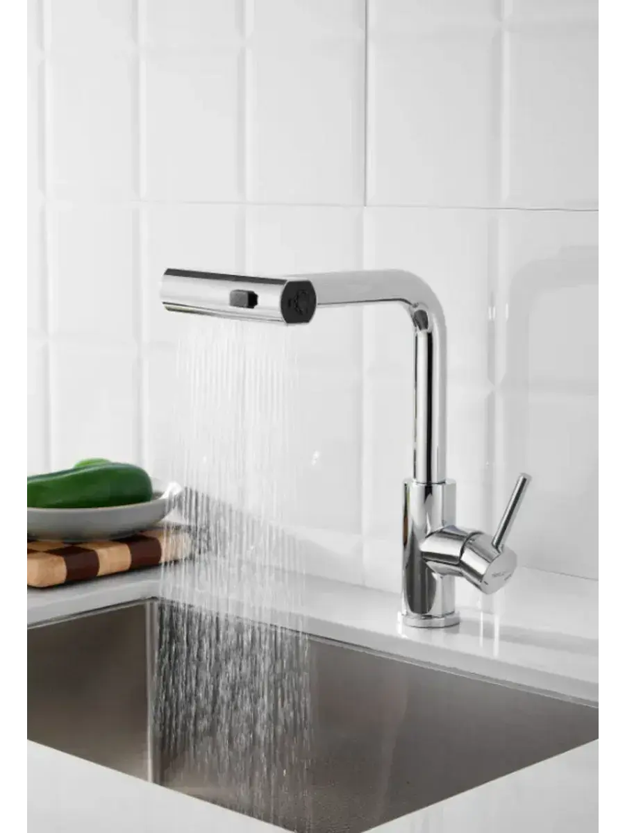 Преимущества этого кухонного смесителя заключаются не только в его внешний вид, но и в функциональности. Оснащенный выдвижным изливом, он позволяет комфортно и удобно промывать посуду, овощи или фрукты, а также легко наполнять высокие кастрюли. Благодаря двойному режиму работы, вы можете переключаться между струёй для обычного пользования и режимом душа, что значительно облегчает процесс мойки.