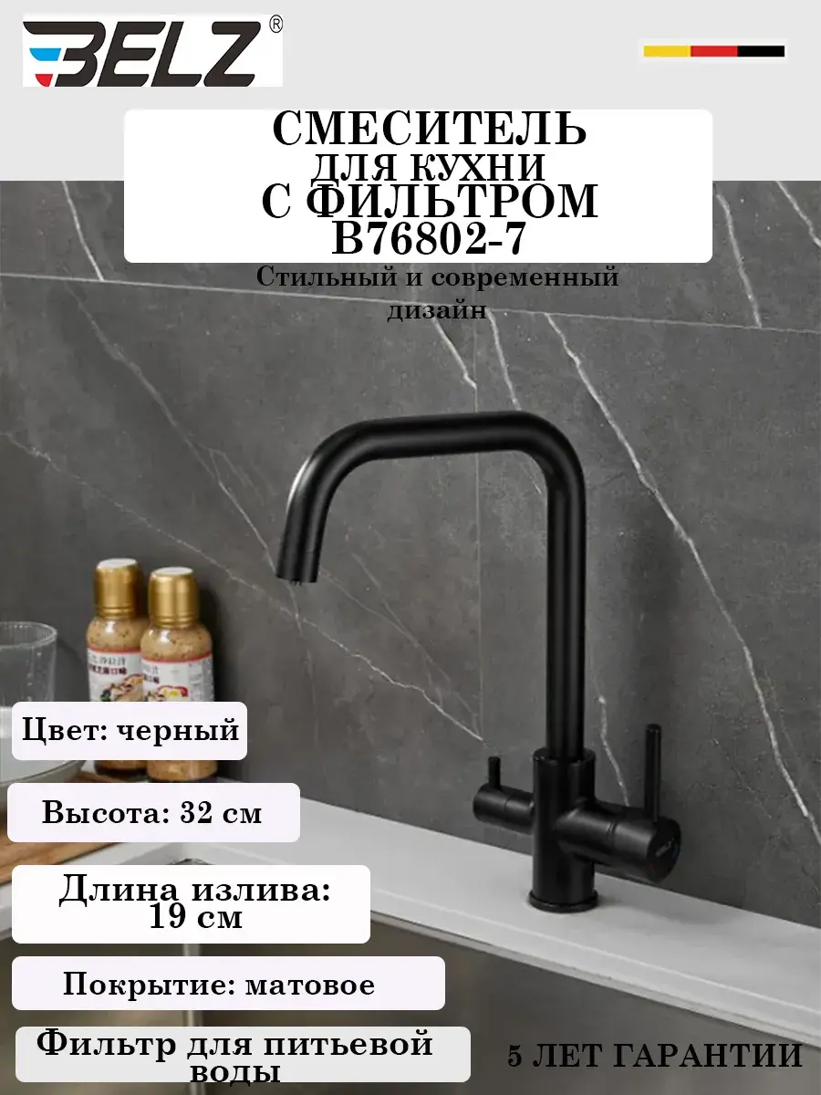 Смеситель для кухни с фильтром под питьевую воду BELZ B76802-7 имеет современный дизайн и стильный хромированный покрытие, которое делает его красивым дополнением к вашей кухне. Он также легко устанавливается на раковину благодаря своему компактному размеру и легкой конструкции.
