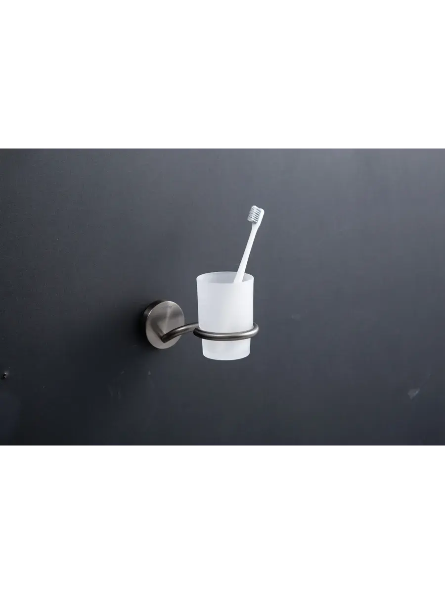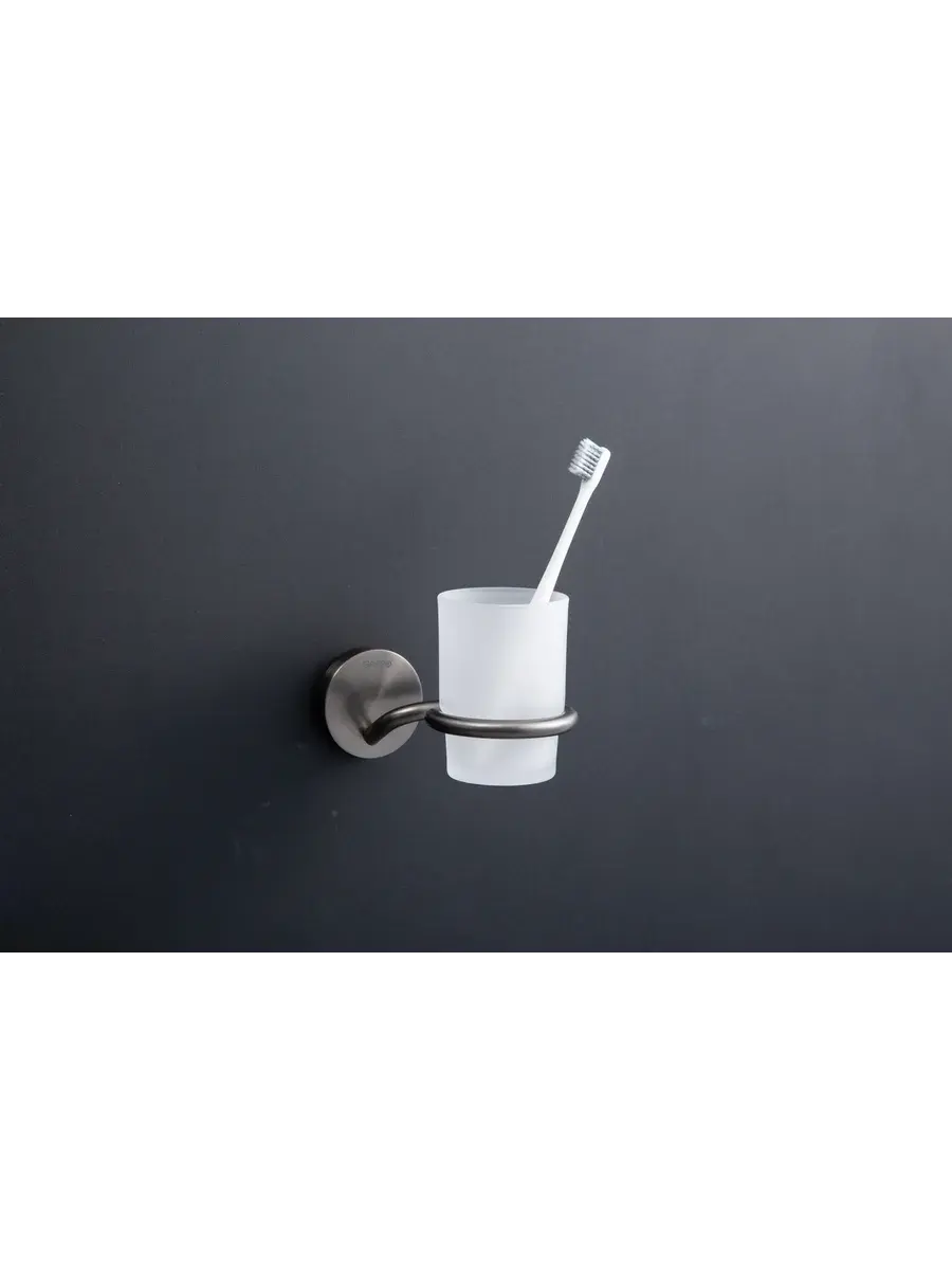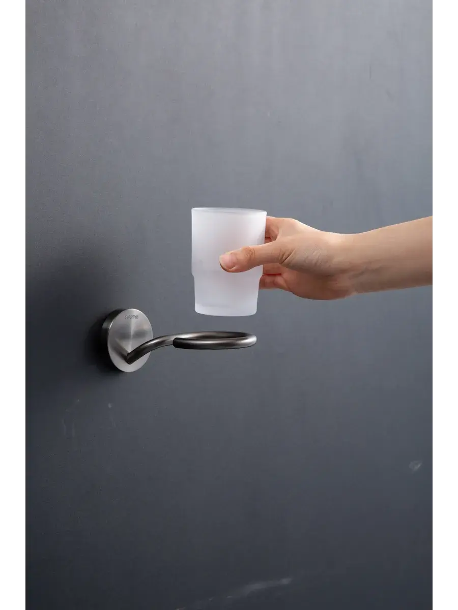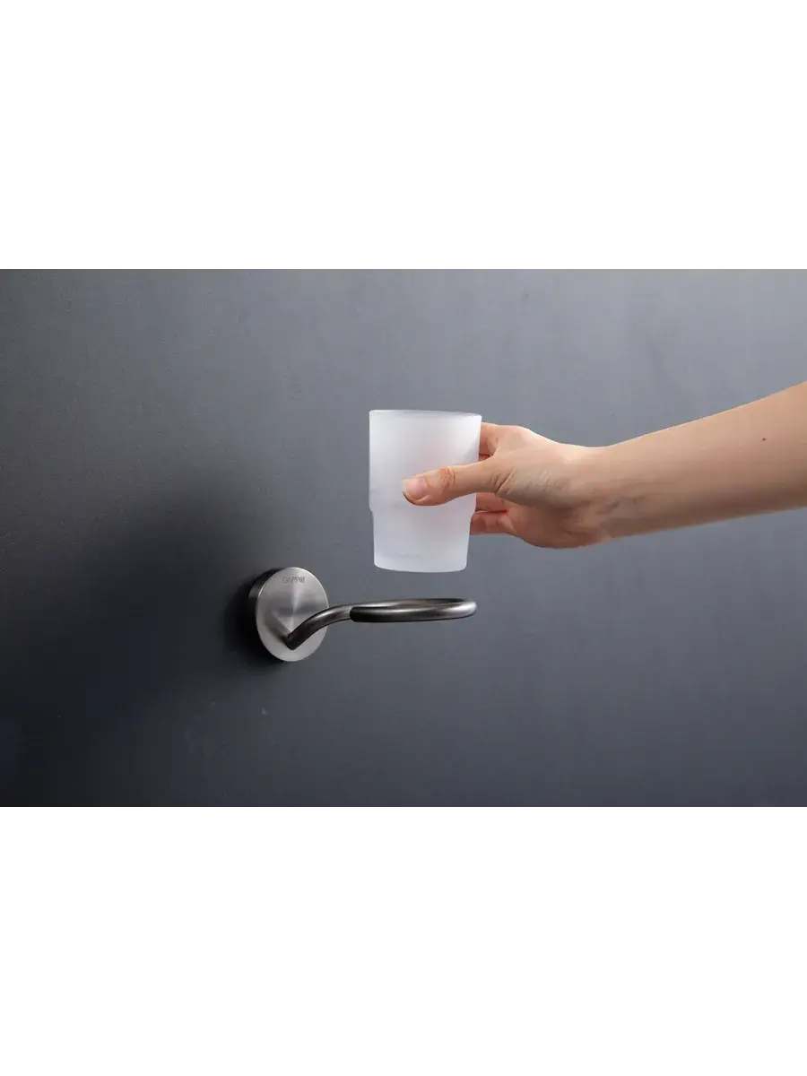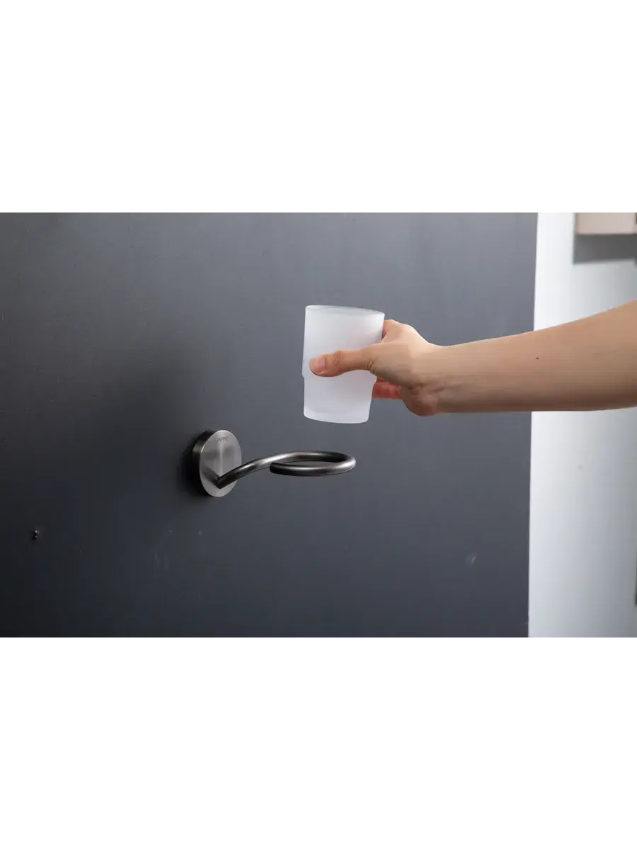 Стакан оснащен настенным держателем, который обеспечивает удобство использования и позволяет экономить пространство на раковине или столешнице. Держатель крепится к стене с помощью саморезов, что гарантирует надежное крепление и устойчивость конструкции.
