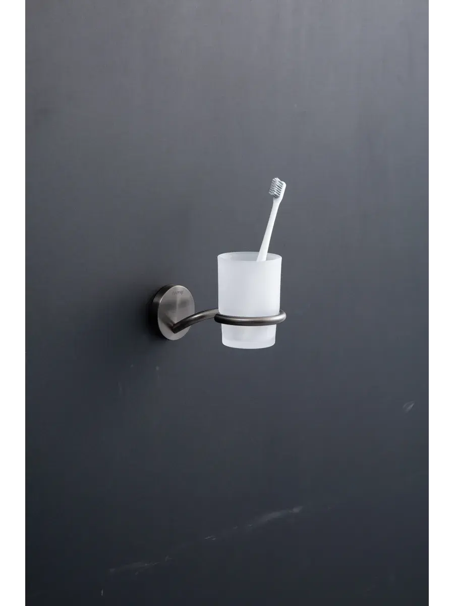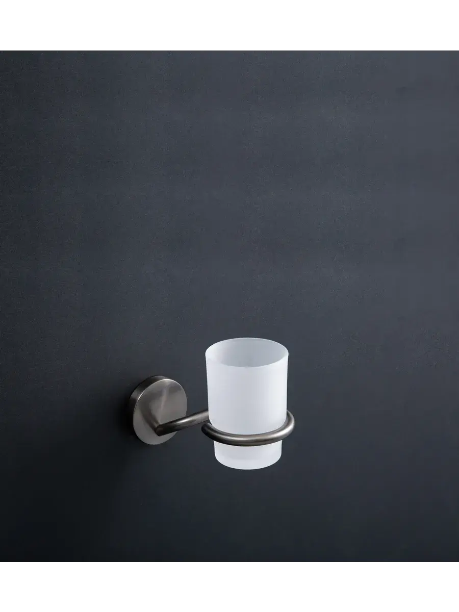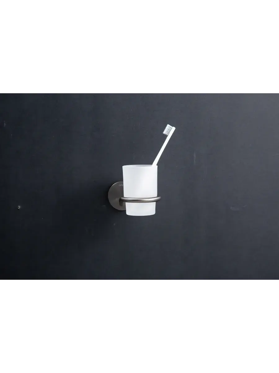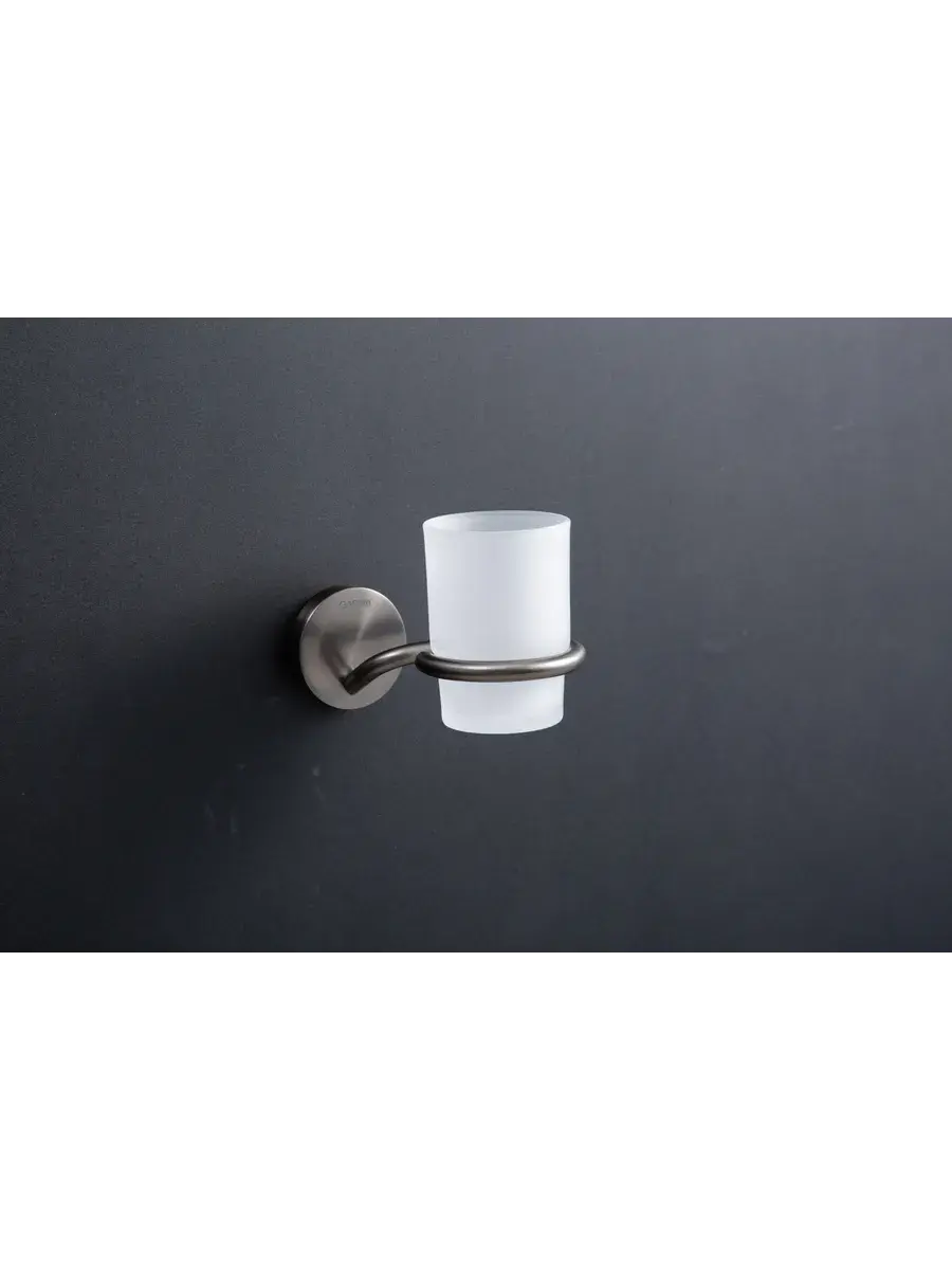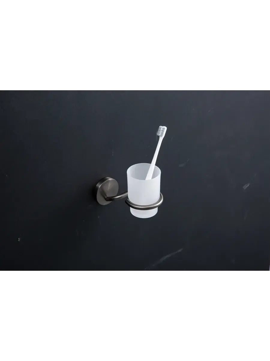 Стакан оснащен настенным держателем, который обеспечивает удобство использования и позволяет экономить пространство на раковине или столешнице. Держатель крепится к стене с помощью саморезов, что гарантирует надежное крепление и устойчивость конструкции.