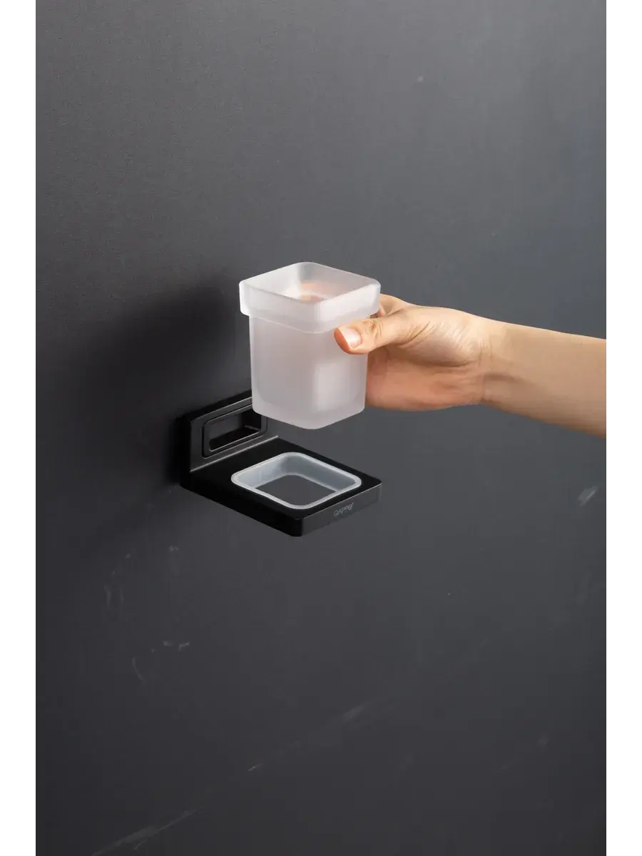 Черный цвет держателя придает изделию элегантный и современный вид. Квадратная форма и компактные размеры (высота 11,7 см, ширина 8,5 см, длина 10,4 см) позволяют разместить стакан даже в небольшом пространстве.