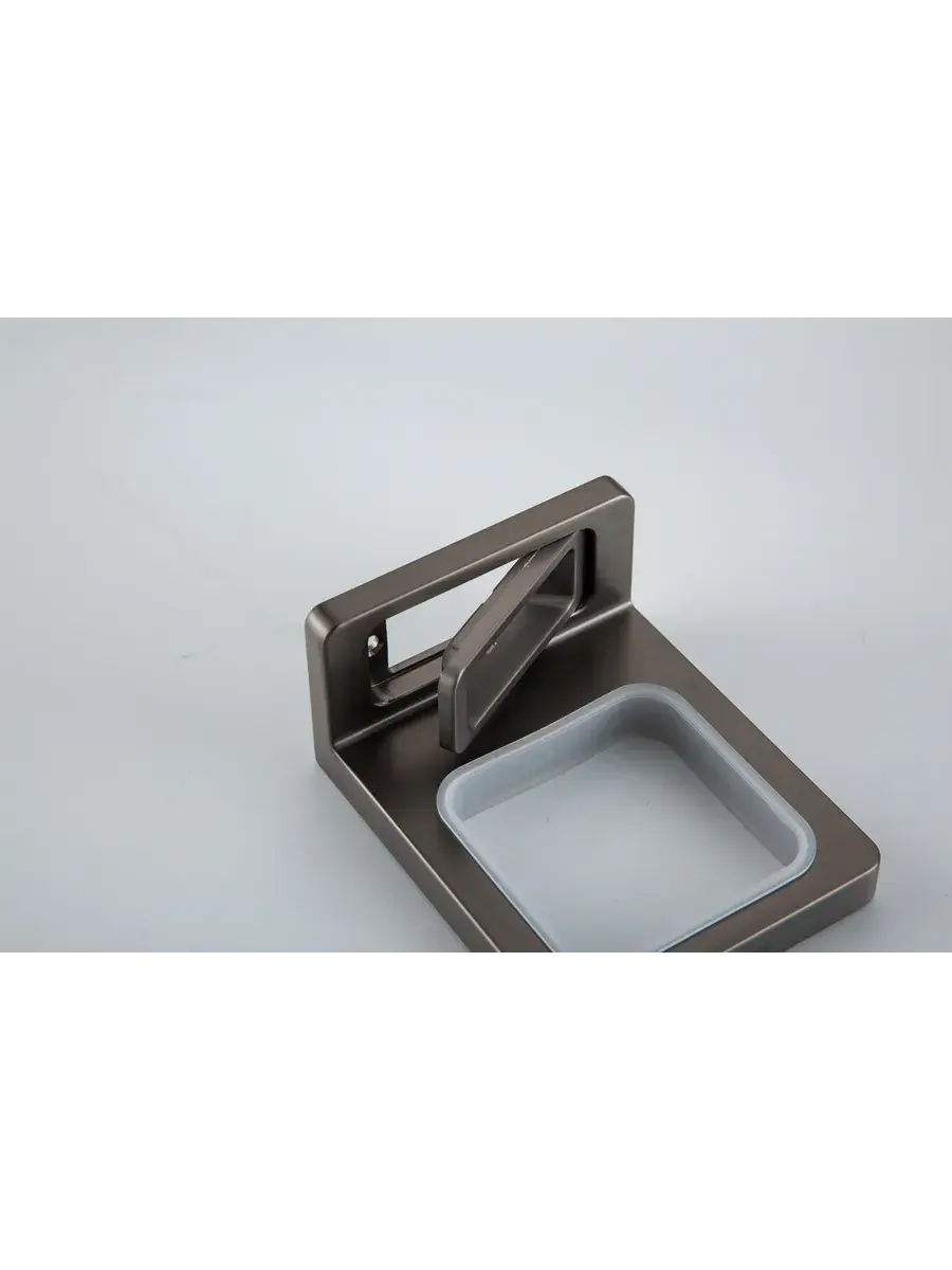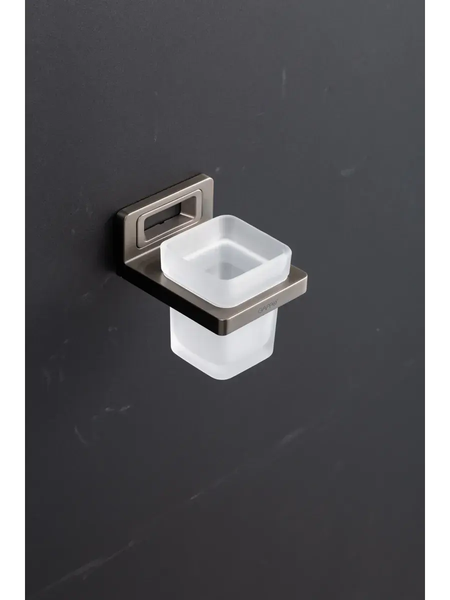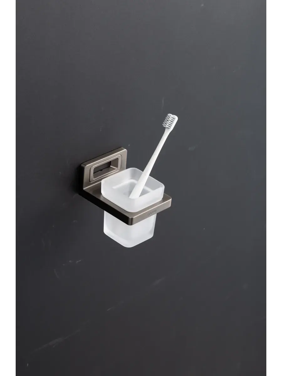 Цвет оружейная сталь держателя придает изделию элегантный и современный вид. Квадратная форма и компактные размеры (высота 11,7 см, ширина 8,5 см, длина 10,4 см) позволяют разместить стакан даже в небольшом пространстве.