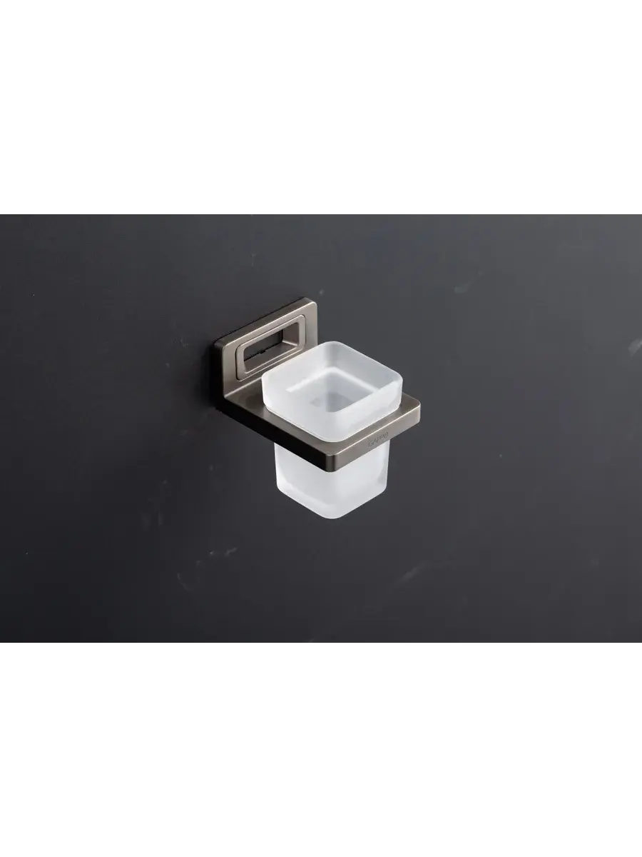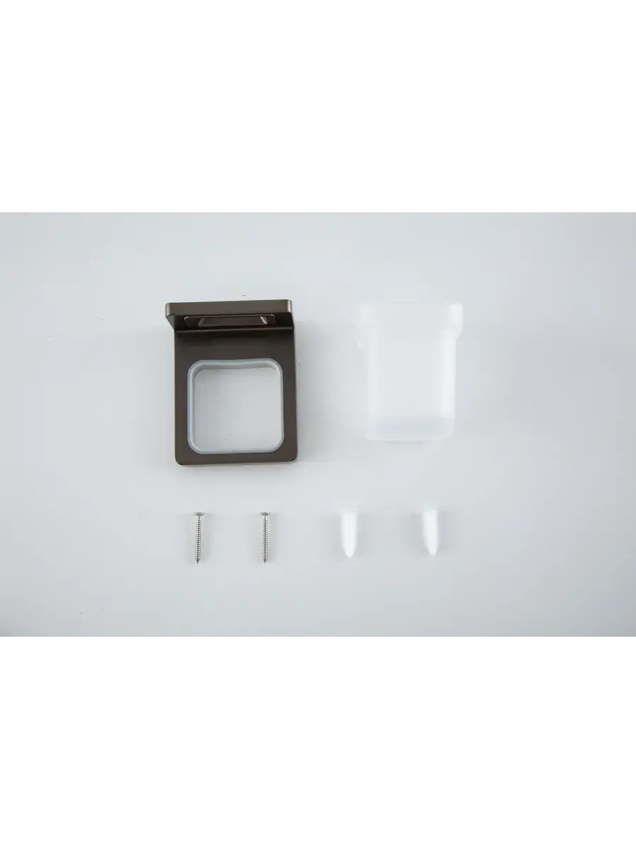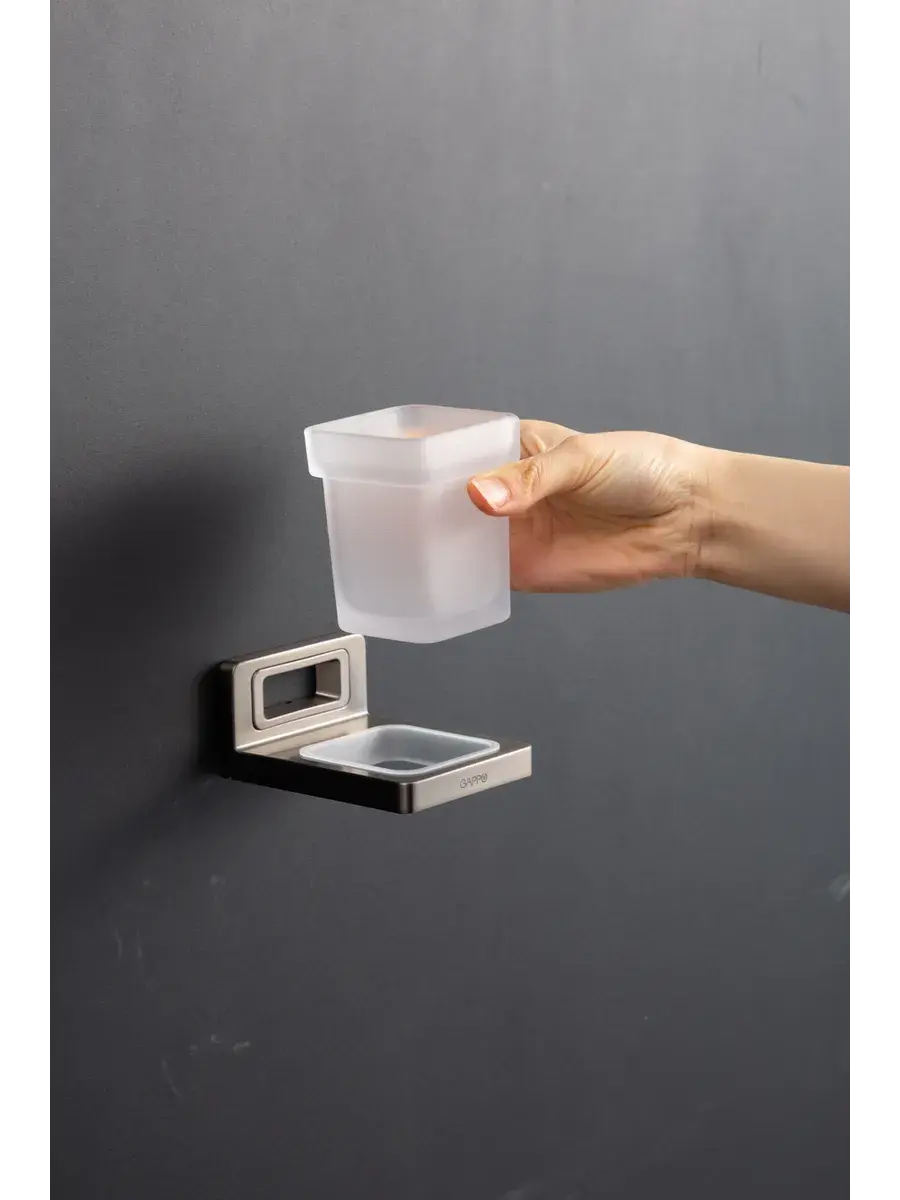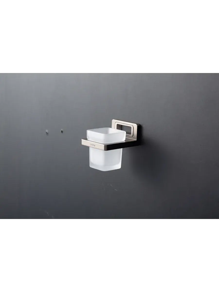Стакан оснащен настенным держателем, который обеспечивает удобство использования и позволяет экономить пространство на раковине или столешнице. Держатель крепится к стене с помощью саморезов, что гарантирует надежное крепление и устойчивость конструкции.