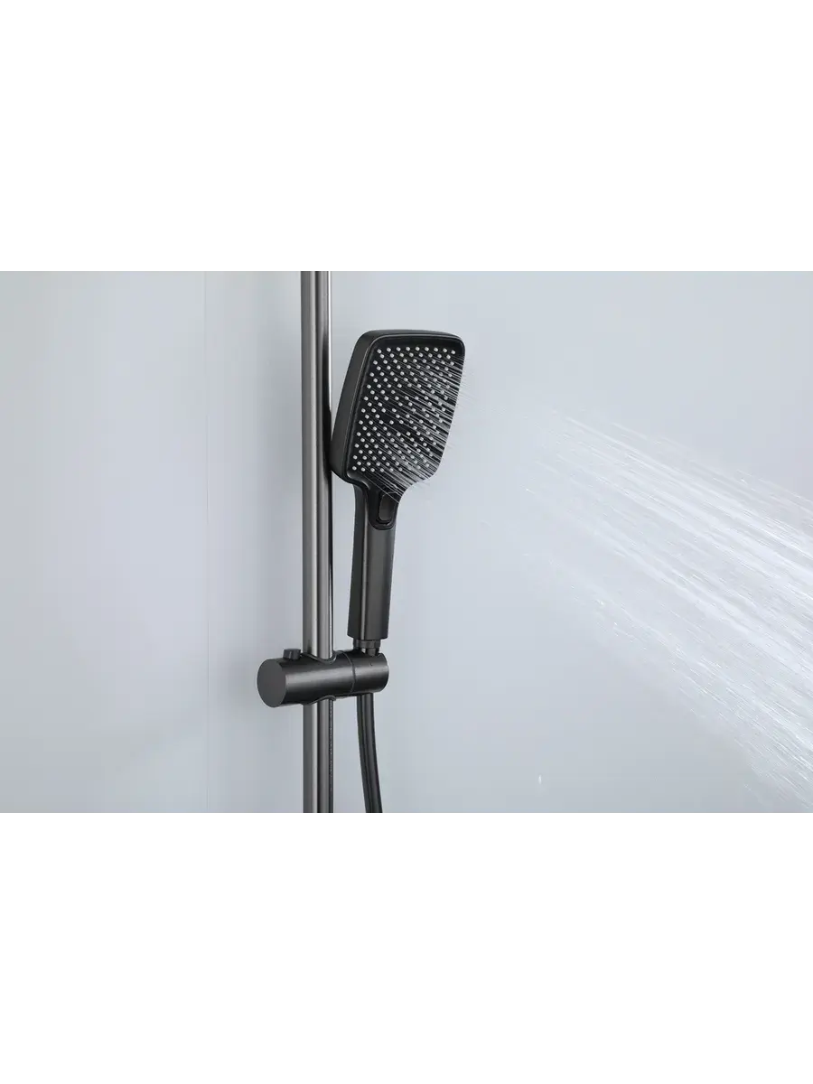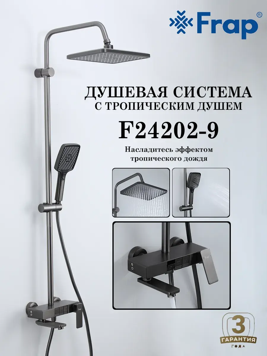 Душевая система со смесителем стойка комплект с тропическим душем для ванной комнаты латунь Frap F24202-9 - это идеальное решение для вашей ванной комнаты. Она выполнена из высококачественной из алюминия, что гарантирует ее долговечность и надежность. Смеситель для ванны со стойкой с душем тропический для ванны с душем оснащена смесителем с однорычажным переключением и поворотным изливом, ручной душевой лейкой и верхним тропическим душем. Благодаря испанскому керамическому картриджу SEDAL и качественному аэратору NEOPERL, расход воды будет экономичным. Высота стойки для душа регулируется в пределах 870-1478 мм, а размеры верхнего душа, ручной лейки и душевого шланга обеспечивают комфортное использование. Гарантийный срок на корпус и покрытие составляет 3 года, а на комплектующие - 1 год. Бренд GAPPO известен своим качеством и надежностью, а черное матовое покрытие придает системе элегантный и стильный вид. Тропический душ комплект с смесителем душевую стойку Frap F24202-9, вы получаете не только функциональность, но и прекрасное дополнение к интерьеру вашей ванной комнаты.