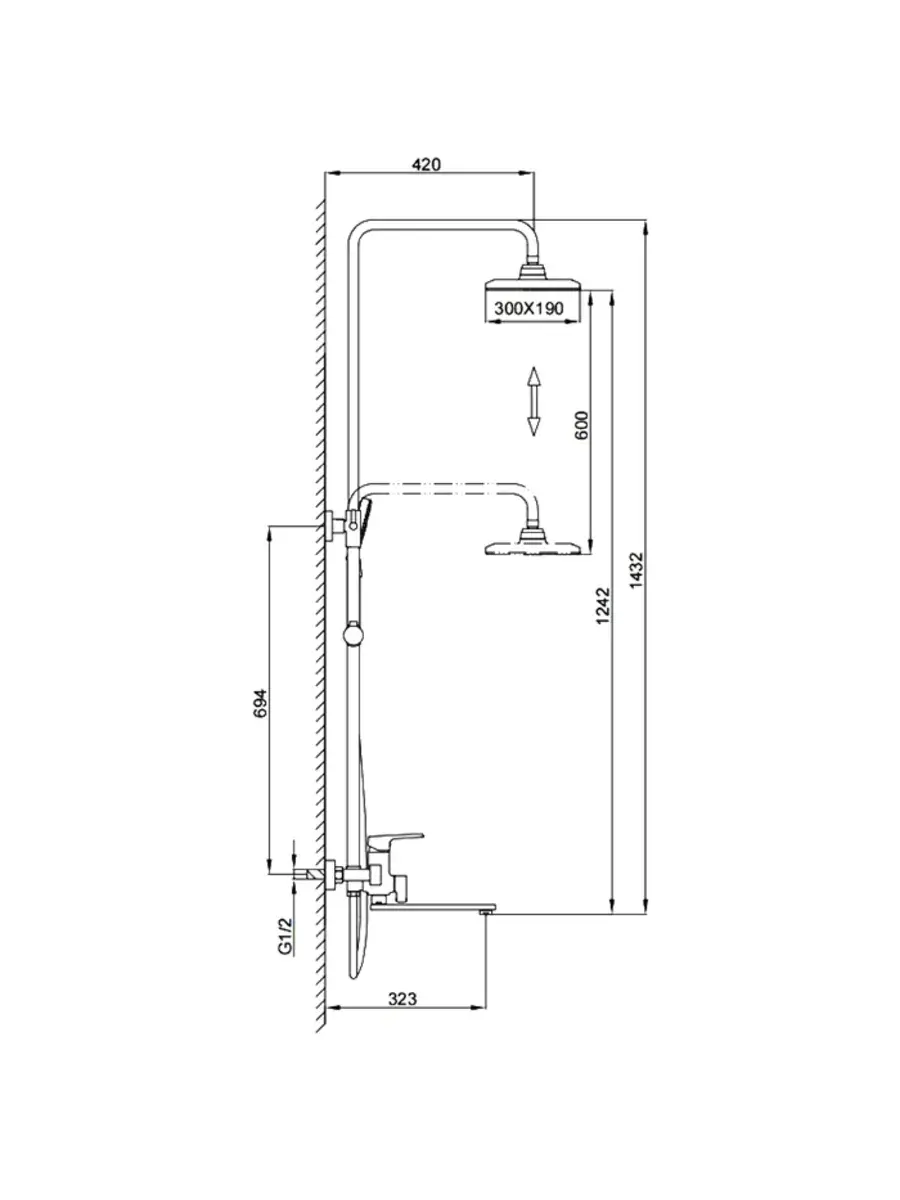 регулируемый угол наклона верхнего душа
