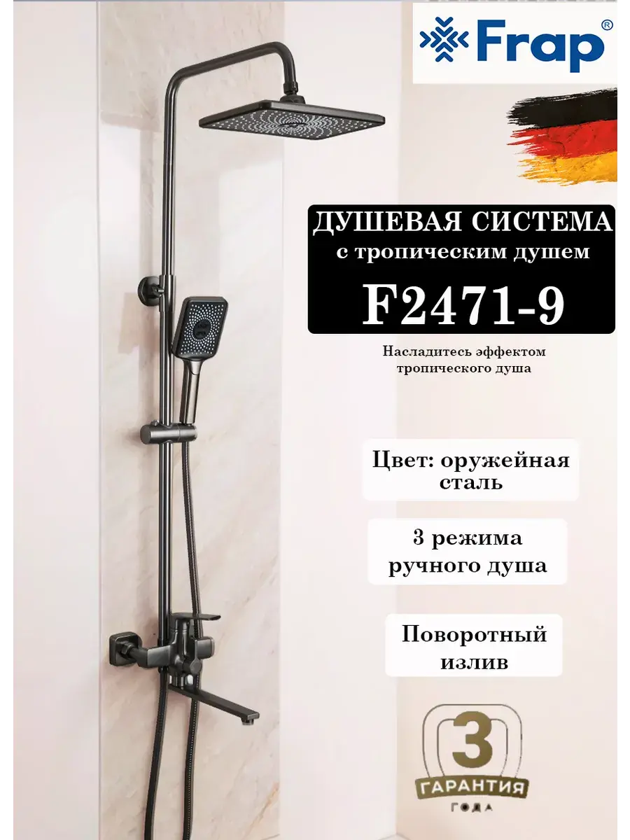 Фрап душевая система с тропическим душем и смесителем - это идеальный выбор для тех, кто ценит комфорт и качество.