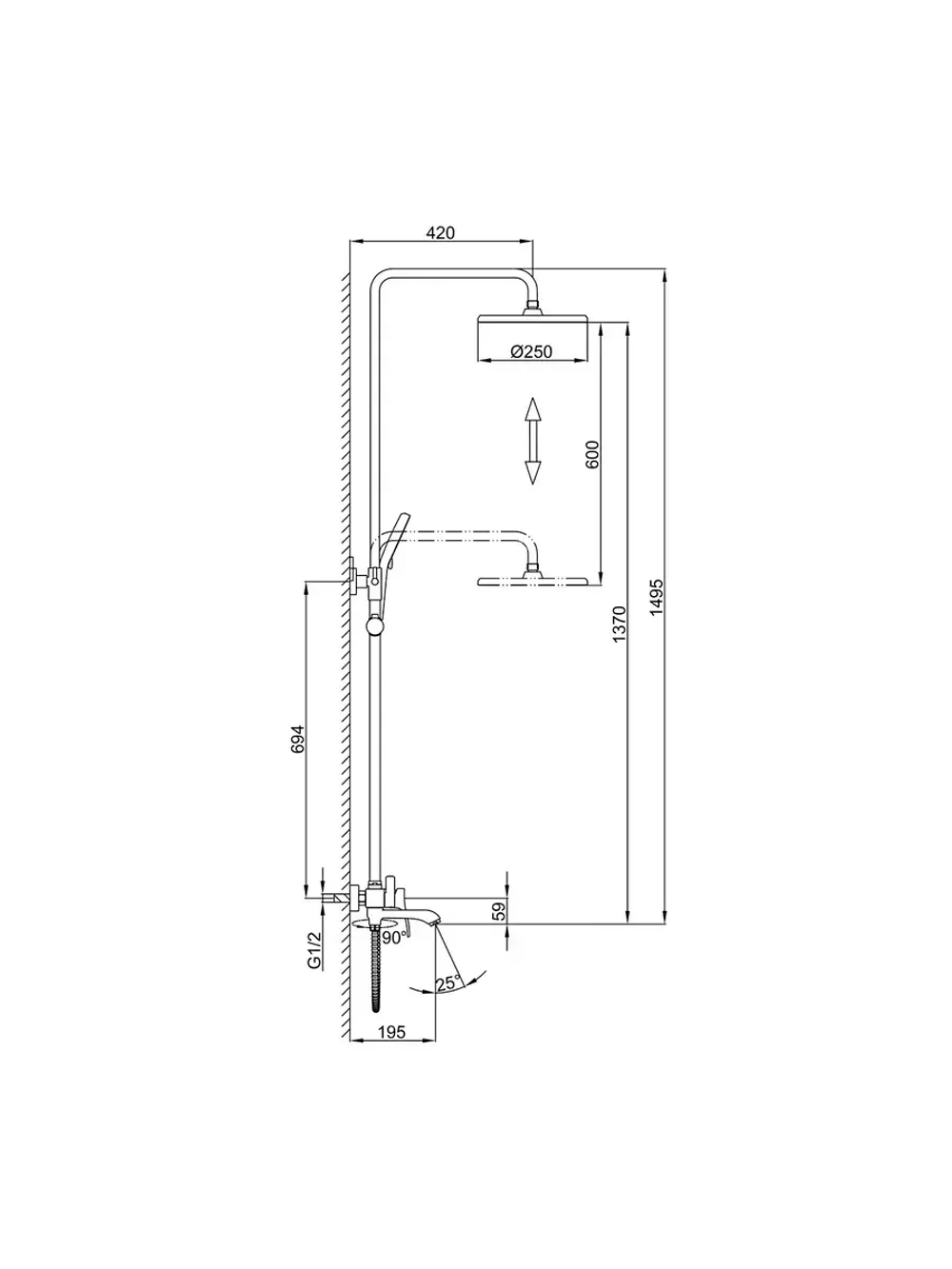 регулируемый угол наклона верхнего душа