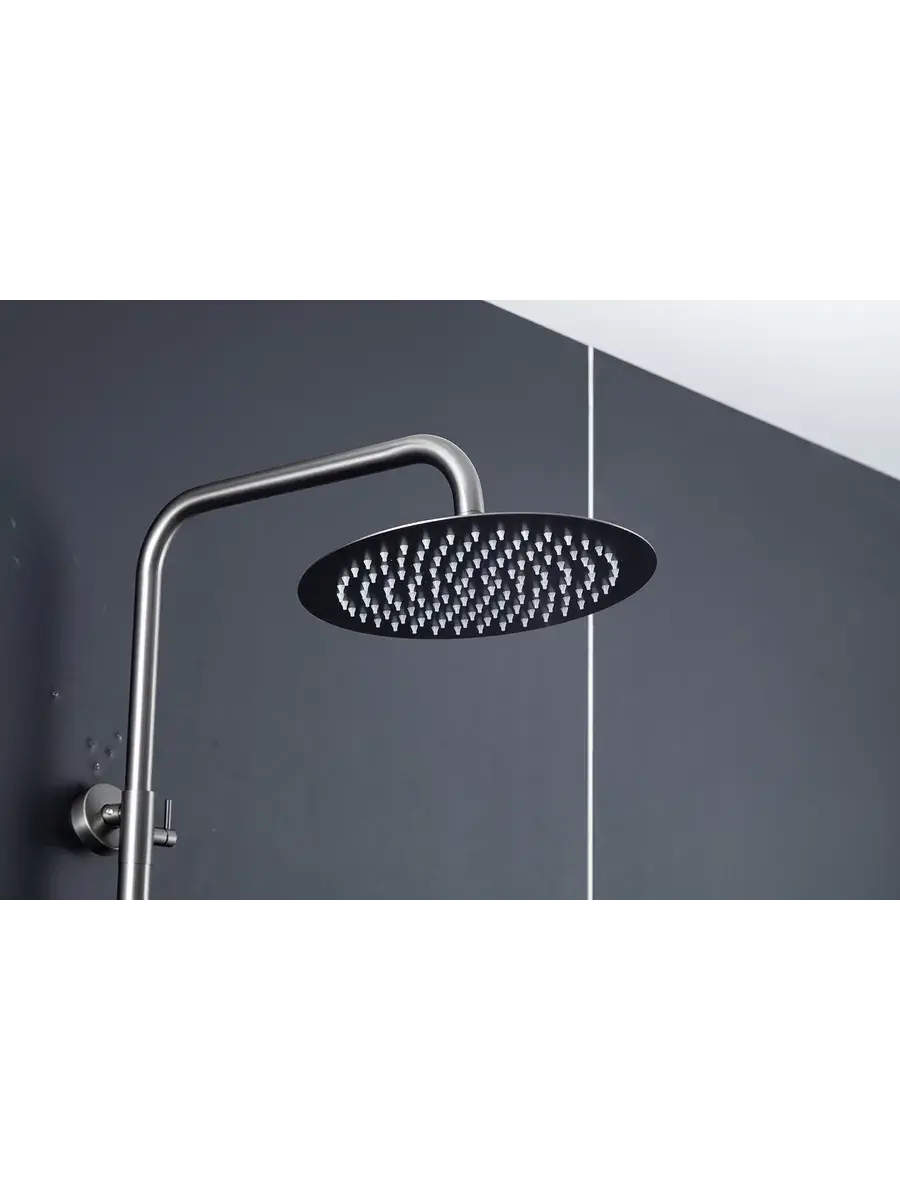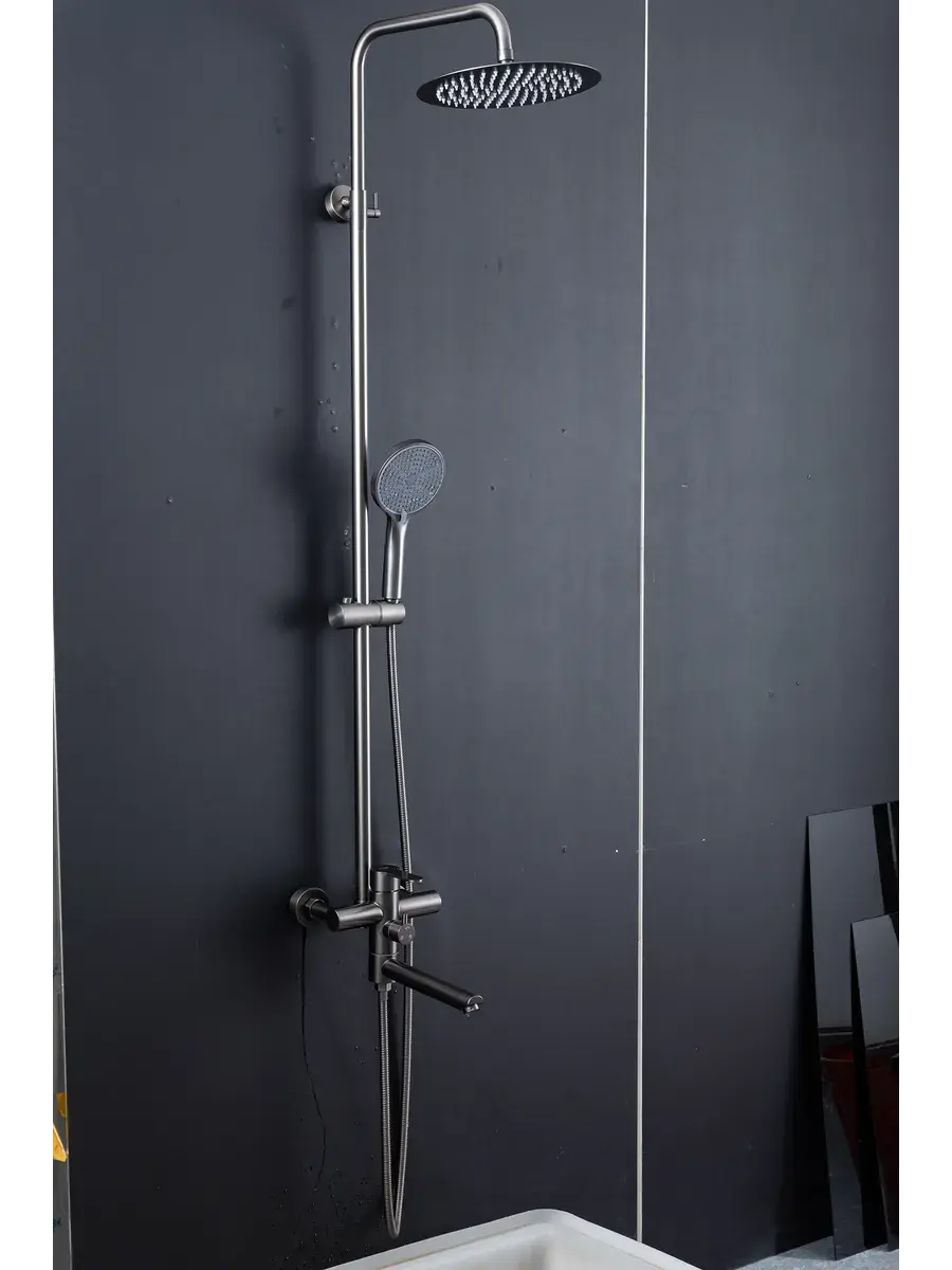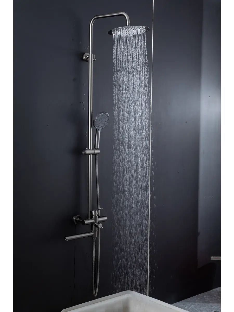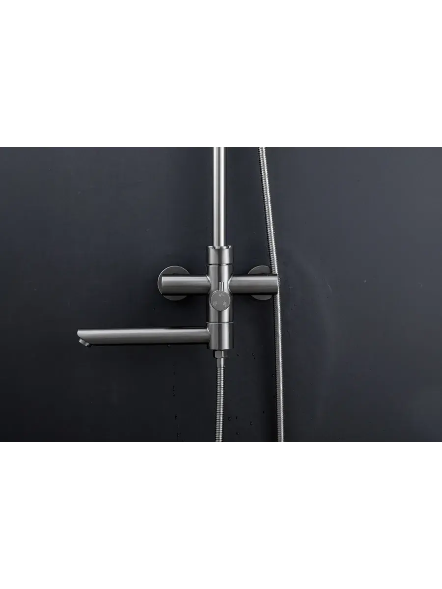 Настенная душевая система с изливом F24801-9 Frap - продукция класса люкс европейского качества - лучшее душевое оборудование из коллекции немецкой сантехники с гарантией 3 года на корпус и 1 год на комплектующие. Душевой гарнитур из нержавеющей стали украсит интерьер ванной комнаты или душевой кабины, порадует стильным дизайном и комфортом дома или на даче. Предусмотрено 3 режима подачи воды. Переключение давления воды с короткого излива на выдвижной гибкий шланг со съемной лейкой производится поворотом излива, а на верхний плоский душ при повернутом изливе поворотным краном-переключателем. Душевой гарнитур идеально впишется в интерьер вашей ванной комнаты.
