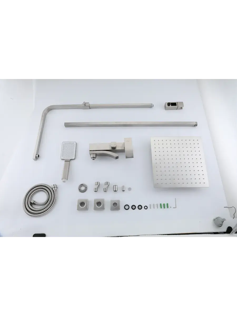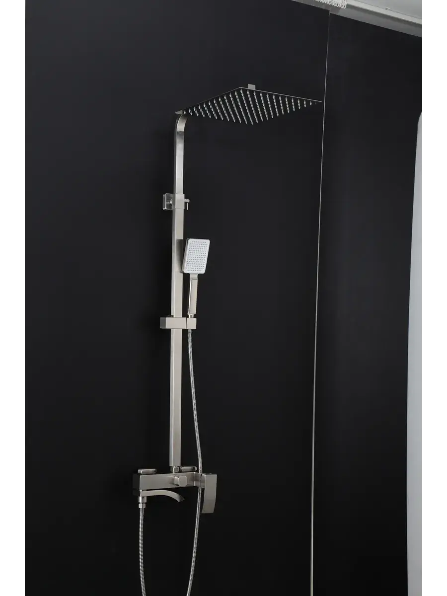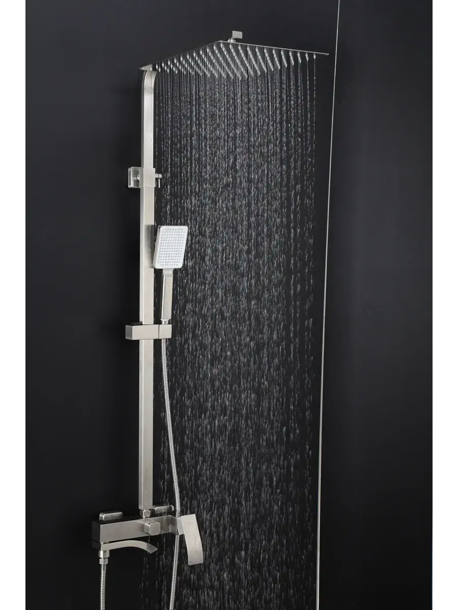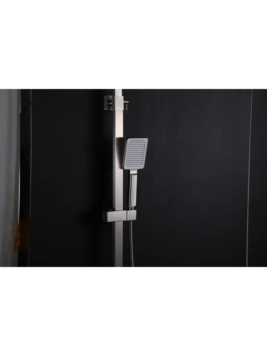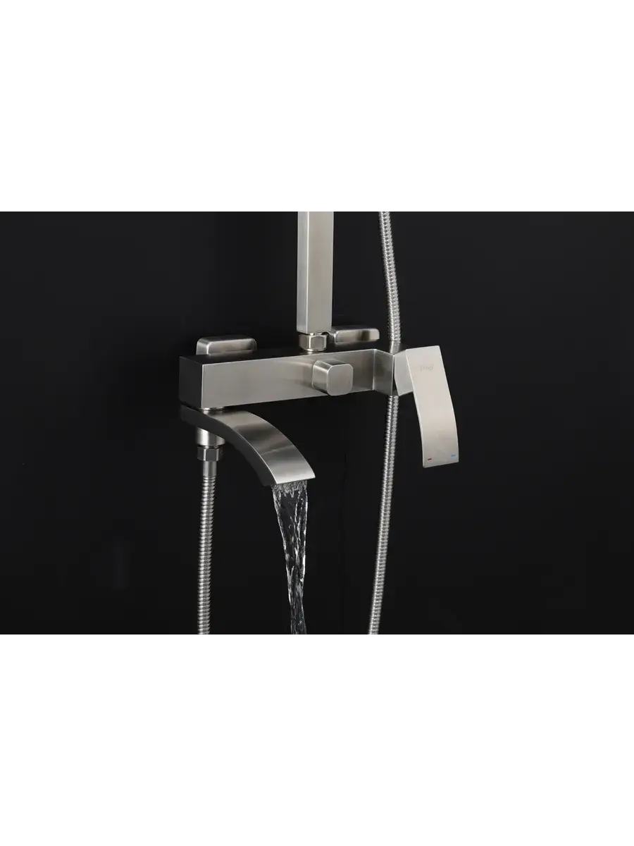 Интуитивно понятное управление позволяет легко регулировать температуру и напор воды. Смеситель из нержавеющей стали устойчив к коррозии и царапинам. Универсальный монтаж подходит для любых помещений. Эта душевая система — идеальный выбор для дизайнерских ванных комнат, где важны стиль и долговечность.