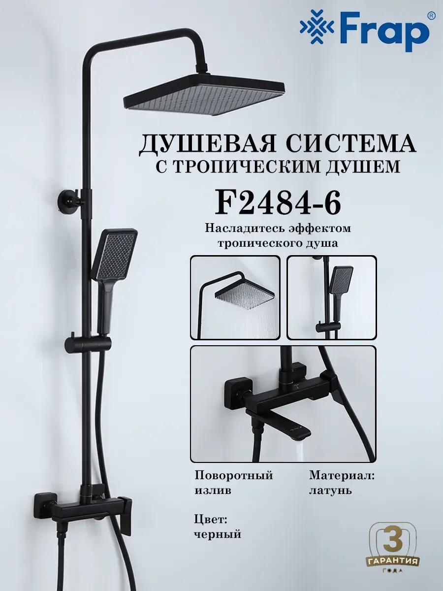 Душевая система со смесителем стойка комплект с тропическим душем для ванной комнаты латунь Frap F2484-6 - это идеальное решение для вашей ванной комнаты. Она выполнена из высококачественной латуни, что гарантирует ее долговечность и надежность. Смеситель для ванны со стойкой с душем тропический для ванны с душем оснащена смесителем с однорычажным переключением и поворотным изливом, ручной душевой лейкой и верхним тропическим душем. Благодаря испанскому керамическому картриджу SEDAL и качественному аэратору NEOPERL, расход воды будет экономичным. Высота стойки для душа регулируется в пределах 870-1355 мм, а размеры верхнего душа, ручной лейки и душевого шланга обеспечивают комфортное использование. Гарантийный срок на корпус и покрытие составляет 3 года, а на комплектующие - 1 год. Бренд GAPPO известен своим качеством и надежностью, а хромированное покрытие придает системе элегантный и стильный вид. Тропический душ комплект с смесителем душевую стойку Frap F2484-6, вы получаете не только функциональность, но и прекрасное дополнение к интерьеру вашей ванной комнаты.
