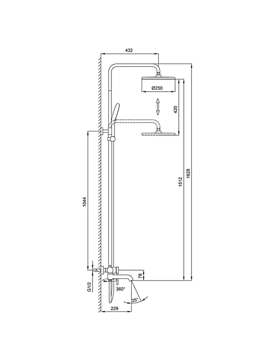 регулируемый угол наклона верхнего душа