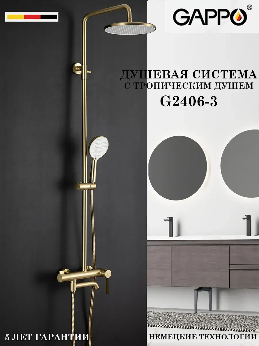 Душевая система со смесителем стойка комплект с тропическим душем для ванной комнаты латунь GAPPO G2406-3 - это идеальное решение для вашей ванной комнаты. Она выполнена из высококачественной латуни, что гарантирует ее долговечность и надежность. Высота стойки для душа регулируется в пределах 1150-1628 мм, а размеры верхнего душа, ручной лейки и душевого шланга обеспечивают комфортное использование. Гарантийный срок на корпус и покрытие составляет 5 лет, а на комплектующие - 1 год. Бренд GAPPO известен своим качеством и надежностью, а хромированное покрытие придает системе элегантный и стильный вид. Сантехника GAPPO - это сочетание функциональности, стиля и надежности. Выбирая душевую систему GAPPO G2406-3, вы получаете не только качественную сантехнику, но и стильное дополнение к интерьеру вашей ванной комнаты.