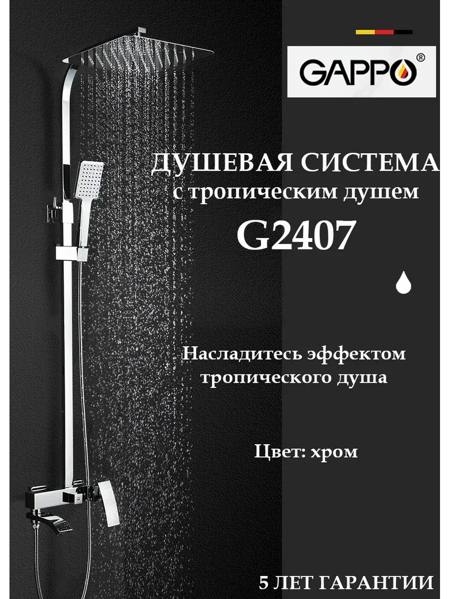 Душевая система со смесителем стойка комплект с тропическим душем для ванной комнаты латунь GAPPO G2407 - это идеальное решение для вашей ванной комнаты. Она выполнена из высококачественной латуни, что гарантирует ее долговечность и надежность. Смеситель для ванны со стойкой с душем тропический для ванны с душем оснащена смесителем с однорычажным переключением и стационарным каскадным изливом, ручной душевой лейкой и верхним тропическим душем. Высота стойки для душа регулируется в пределах 1000-1500 мм, а размеры верхнего душа, ручной лейки и душевого шланга обеспечивают комфортное использование. Гарантийный срок на корпус и покрытие составляет 5 лет, а на комплектующие - 1 год. Бренд GAPPO известен своим качеством и надежностью, а хромированное покрытие придает системе элегантный и стильный вид. Тропический душ комплект с смесителем душевую стойку GAPPO G2407, вы получаете не только функциональность, но и прекрасное дополнение к интерьеру вашей ванной комнаты.