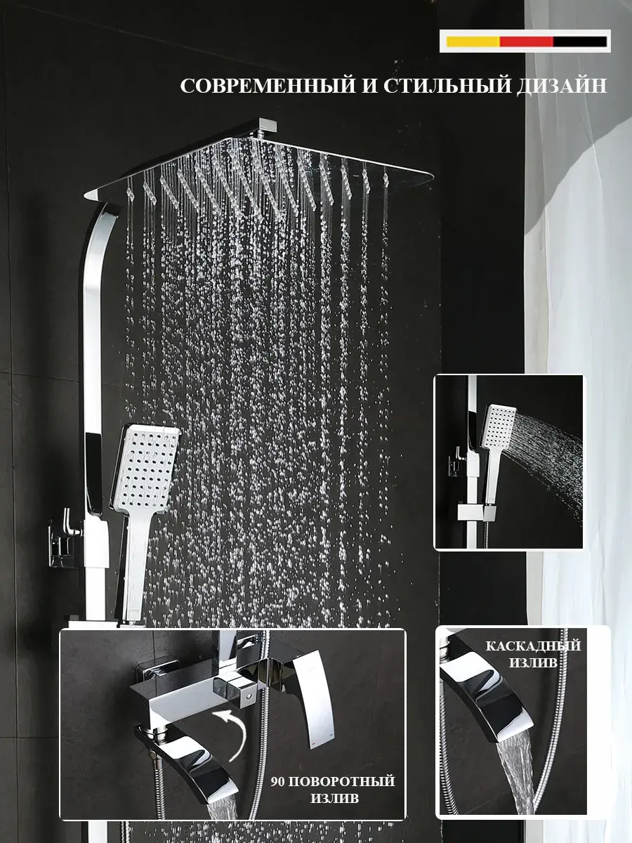 Душевой гарнитур GAPPO G2407 - это полный комплект для монтажа на стену сантехники для вашей ванной комнаты. Включает в себя тропический душ, душевую лейку, держатель душевой лейки на штанге и душевой шланг. Этот комплект идеально подойдет для установки в душевые кабины различных размеров. Панель системы выполнена из латуни с хромированным покрытием, что придает ей элегантный и современный вид. Кроме того, в комплекте предусмотрен гигиенический кран, который обеспечивает быстрый и удобный доступ к воде. Выбирая душевую систему GAPPO G2407, вы получаете не только качественную сантехнику, но и стильное дополнение к интерьеру вашей ванной комнаты.