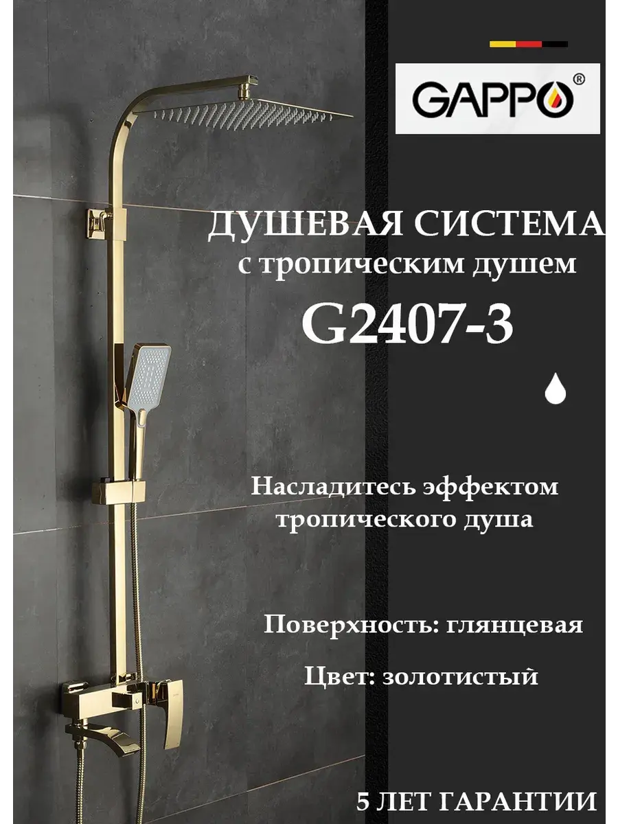 Душевой гарнитур GAPPO G2407-3 - это полный комплект для монтажа на стену сантехники для вашей ванной комнаты. Включает в себя тропический душ, душевую лейку, держатель душевой лейки на штанге и душевой шланг. Этот комплект идеально подойдет для установки в душевые кабины различных размеров. Душевая стойка GAPPO отличается высоким качеством и долговечностью, благодаря чему вы сможете наслаждаться комфортным и гигиеническим душем на протяжении многих лет. Панель системы выполнена из латуни с хромированным покрытием, что придает ей элегантный и современный вид. Кроме того, в комплекте предусмотрен гигиенический кран, который обеспечивает быстрый и удобный доступ к воде. Сантехника GAPPO - это сочетание функциональности, стиля и надежности. Выбирая душевую систему GAPPO G2407-3, вы получаете не только качественную сантехнику, но и стильное дополнение к интерьеру вашей ванной комнаты.