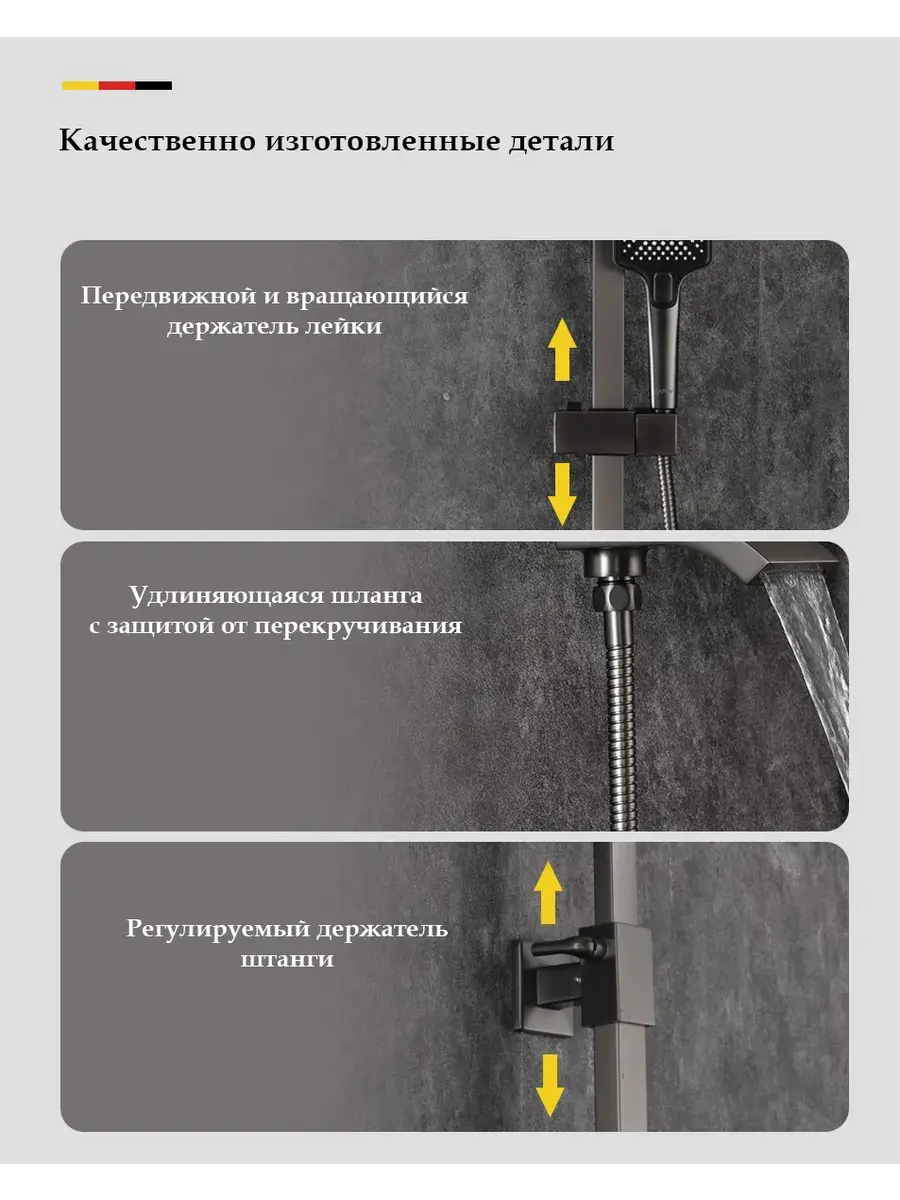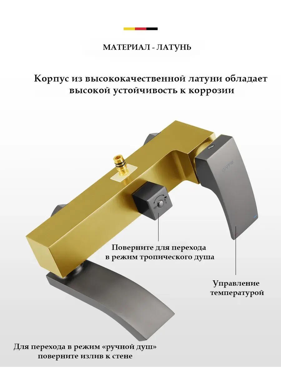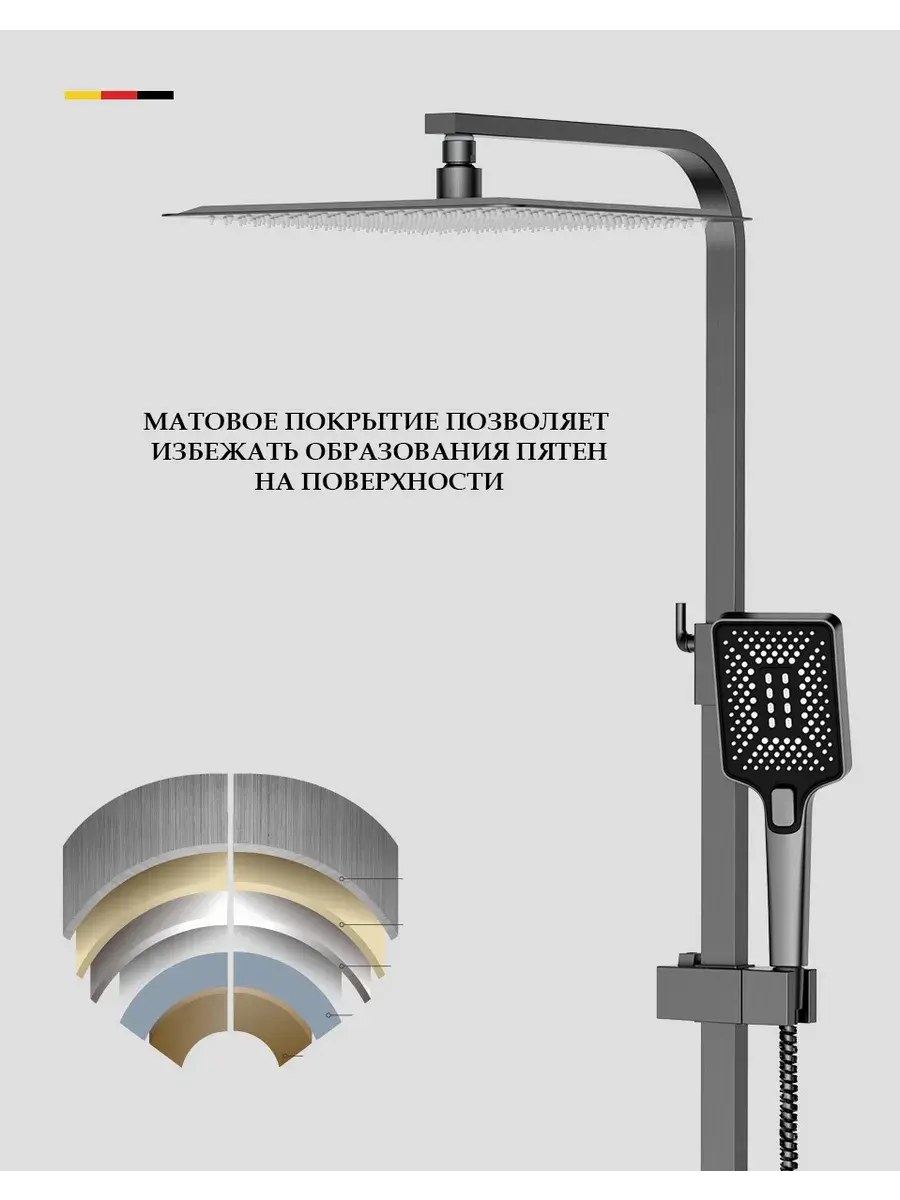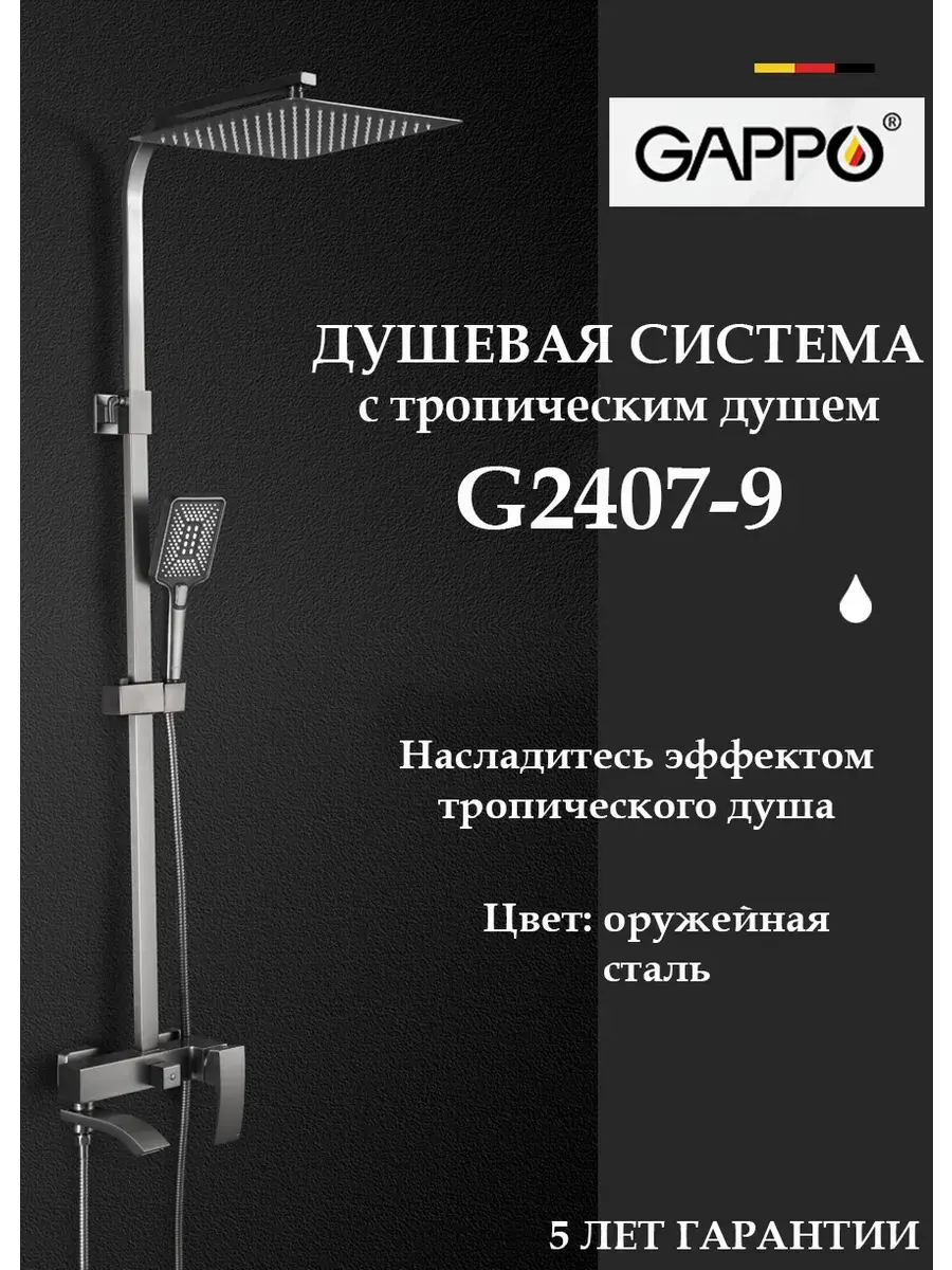 Душевой гарнитур GAPPO G2407-9 - это полный комплект для монтажа на стену сантехники для вашей ванной комнаты. Включает в себя тропический душ, душевую лейку, держатель душевой лейки на штанге и душевой шланг. Этот комплект идеально подойдет для установки в душевые кабины различных размеров. Душевая стойка GAPPO отличается высоким качеством и долговечностью, благодаря чему вы сможете наслаждаться комфортным и гигиеническим душем на протяжении многих лет. Панель системы выполнена из латуни с матовым покрытием, что придает ей элегантный и современный вид. Кроме того, в комплекте предусмотрен гигиенический кран, который обеспечивает быстрый и удобный доступ к воде. Сантехника GAPPO - это сочетание функциональности, стиля и надежности. Выбирая душевую систему GAPPO G2407-9, вы получаете не только качественную сантехнику, но и стильное дополнение к интерьеру вашей ванной комнаты.