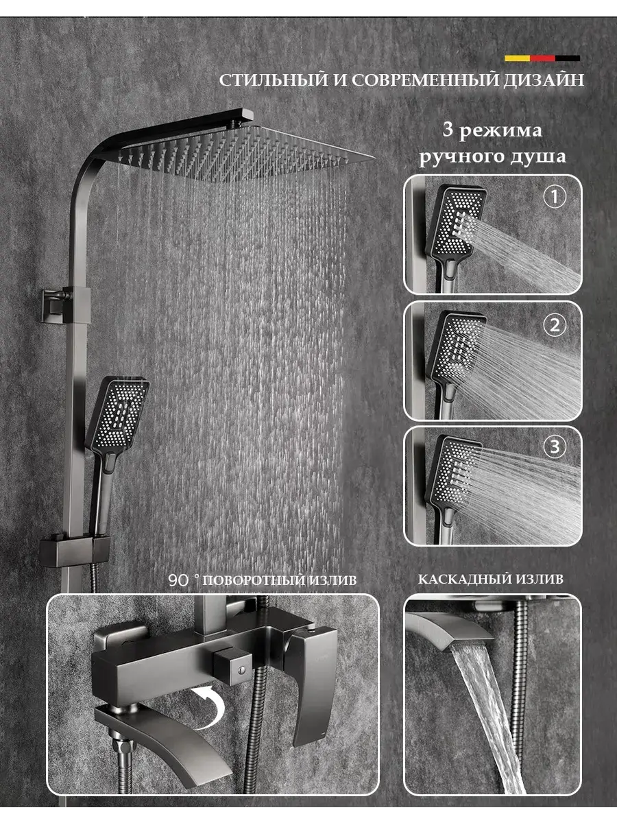 Душевая система со смесителем стойка комплект с тропическим душем для ванной комнаты латунь GAPPO G2407-9 - это идеальное решение для вашей ванной комнаты. Она выполнена из высококачественной латуни, что гарантирует ее долговечность и надежность. Смеситель для ванны со стойкой с душем тропический для ванны с душем оснащена смесителем с однорычажным переключением и стационарным каскадным изливом, ручной душевой лейкой и верхним тропическим душем. Благодаря испанскому керамическому картриджу SEDAL и качественному аэратору NEOPERL, расход воды будет экономичным. Высота стойки для душа регулируется в пределах 1000-1500 мм, а размеры верхнего душа, ручной лейки и душевого шланга обеспечивают комфортное использование. Гарантийный срок на корпус и покрытие составляет 5 лет, а на комплектующие - 1 год. Бренд GAPPO известен своим качеством и надежностью, а хромированное покрытие придает системе элегантный и стильный вид. Тропический душ комплект с смесителем душевую стойку GAPPO G2407-9, вы получаете не только функциональность, но и прекрасное дополнение к интерьеру вашей ванной комнаты.