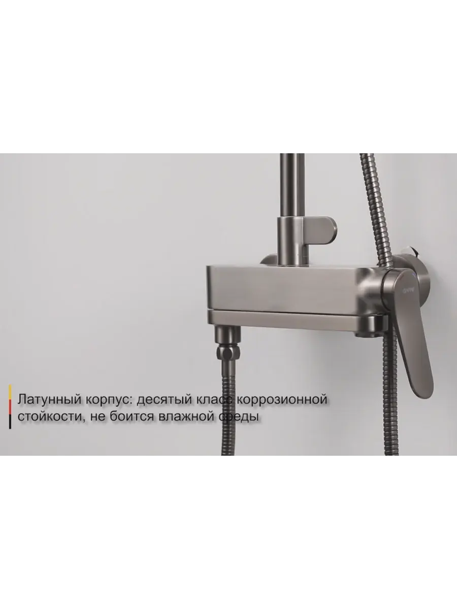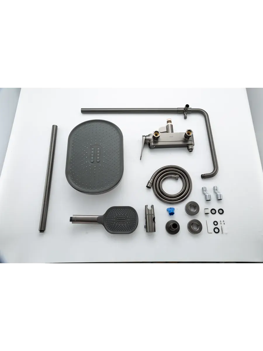 Душевой гарнитур GAPPO G2410-9 - это полный комплект для монтажа на стену сантехники для вашей ванной комнаты. Включает в себя тропический душ, душевую лейку, держатель душевой лейки на штанге и душевой шланг. Душевая стойка GAPPO отличается высоким качеством и долговечностью, благодаря чему вы сможете наслаждаться комфортным душем на протяжении многих лет. Корпус системы выполнена из латуни с графитовым покрытием, что придает ей элегантный и современный вид. Сантехника GAPPO - это сочетание функциональности, стиля и надежности. Выбирая душевую систему GAPPO G2410-9, вы получаете не только качественную сантехнику, но и стильное дополнение к интерьеру вашей ванной комнаты.