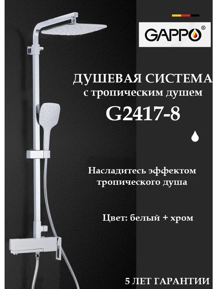 Душевая система со смесителем стойка комплект с тропическим душем для ванной комнаты латунь GAPPO G2417-8 - это идеальное решение для вашей ванной комнаты. Она выполнена из высококачественной латуни, что гарантирует ее долговечность и надежность. Смеситель для ванны со стойкой с душем тропический для ванны с душем оснащена смесителем с однорычажным переключением и стационарным каскадным изливом, ручной душевой лейкой и верхним тропическим душем. Благодаря испанскому керамическому картриджу SEDAL и качественному аэратору NEOPERL, расход воды будет экономичным. Высота стойки для душа регулируется в пределах 1000-1668 мм, а размеры верхнего душа, ручной лейки и душевого шланга обеспечивают комфортное использование. Гарантийный срок на корпус и покрытие составляет 5 лет, а на комплектующие - 1 год. Бренд GAPPO известен своим качеством и надежностью, а хромированное покрытие придает системе элегантный и стильный вид. Тропический душ комплект с смесителем душевую стойку GAPPO G2417-8, вы получаете не только функциональность, но и прекрасное дополнение к интерьеру вашей ванной комнаты.