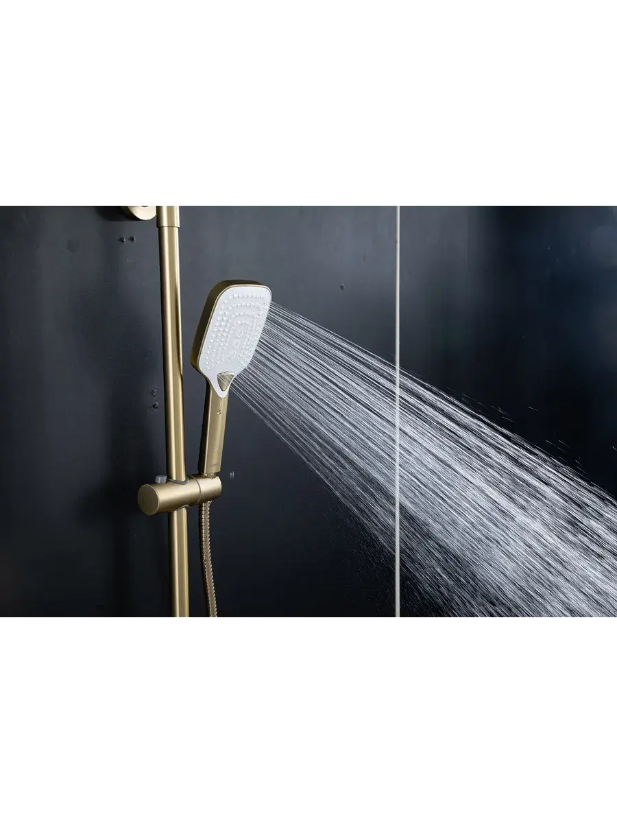 Душевой гарнитур GAPPO G2448-3 - это полный комплект для монтажа на стену сантехники для вашей ванной комнаты. Включает в себя тропический душ, душевую лейку, держатель душевой лейки на штанге и душевой шланг. Этот комплект идеально подойдет для установки в душевые кабины различных размеров. Душевая стойка GAPPO отличается высоким качеством и долговечностью, благодаря чему вы сможете наслаждаться комфортным и гигиеническим душем на протяжении многих лет. Панель системы выполнена из латуни с матовым покрытием, что придает ей элегантный и современный вид. Кроме того, в комплекте предусмотрен гигиенический кран, который обеспечивает быстрый и удобный доступ к воде. Сантехника GAPPO - это сочетание функциональности, стиля и надежности. Выбирая душевую систему GAPPO G2448-3, вы получаете не только качественную сантехнику, но и стильное дополнение к интерьеру вашей ванной комнаты.