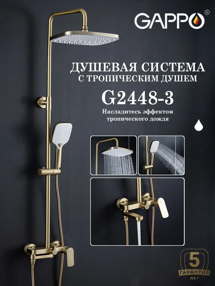 Душевая система со смесителем стойка комплект с тропическим душем для ванной комнаты латунь GAPPO G2448-3 - это идеальное решение для вашей ванной комнаты. Она выполнена из высококачественной латуни, что гарантирует ее долговечность и надежность. Смеситель для ванны со стойкой с душем тропический для ванны с душем оснащена смесителем с однорычажным переключением и стационарным каскадным изливом, ручной душевой лейкой и верхним тропическим душем. Благодаря испанскому керамическому картриджу SEDAL и качественному аэратору NEOPERL, расход воды будет экономичным. Высота стойки для душа регулируется в пределах 1150-1360 мм, а размеры верхнего душа, ручной лейки и душевого шланга обеспечивают комфортное использование. Гарантийный срок на корпус и покрытие составляет 5 лет, а на комплектующие - 1 год. Бренд GAPPO известен своим качеством и надежностью, а хромированное покрытие придает системе элегантный и стильный вид. Тропический душ комплект с смесителем душевую стойку GAPPO G2448-3, вы получаете не только функциональность, но и прекрасное дополнение к интерьеру вашей ванной комнаты.