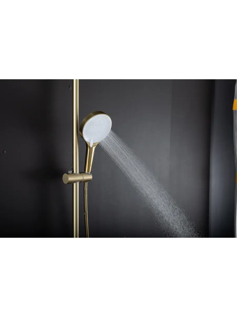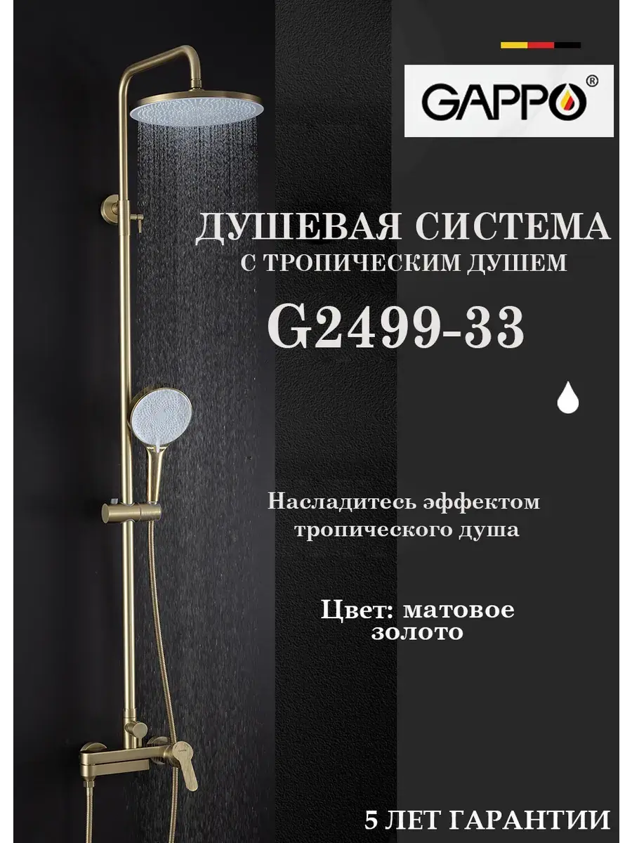 Душевой гарнитур GAPPO G2499-33 - это полный комплект для монтажа на стену сантехники для вашей ванной комнаты. Включает в себя тропический душ, душевую лейку, держатель душевой лейки на штанге и душевой шланг. Этот комплект идеально подойдет для установки в душевые кабины различных размеров. Душевая стойка GAPPO отличается высоким качеством и долговечностью, благодаря чему вы сможете наслаждаться комфортным и гигиеническим душем на протяжении многих лет. Панель системы выполнена из латуни с матовым покрытием, что придает ей элегантный и современный вид. Кроме того, в комплекте предусмотрен гигиенический кран, который обеспечивает быстрый и удобный доступ к воде. Сантехника GAPPO - это сочетание функциональности, стиля и надежности. Выбирая душевую систему GAPPO G2499-33, вы получаете не только качественную сантехнику, но и стильное дополнение к интерьеру вашей ванной комнаты.