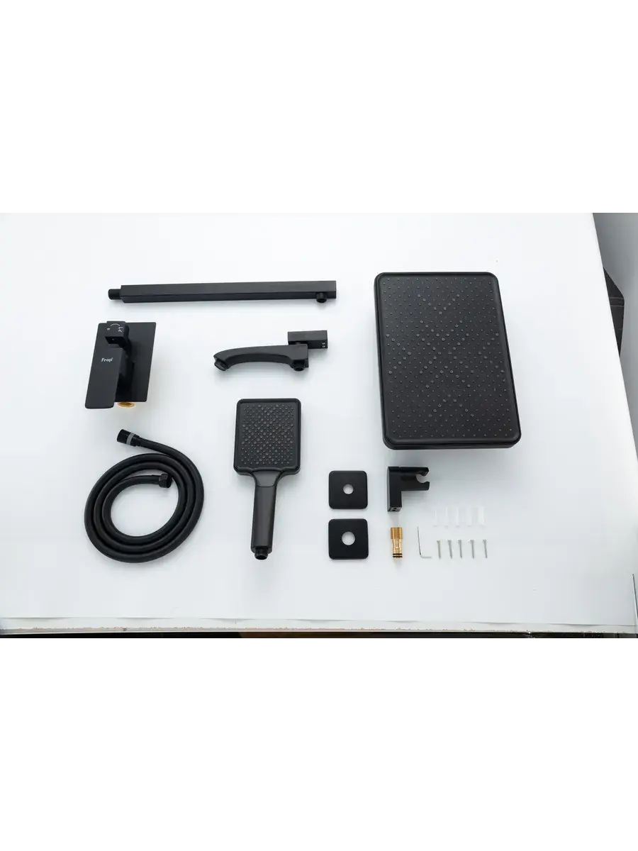 В набор входит весь необходимый комплект, включая шланг, смеситель, тропическую лейку, ручную лейку, крепежные элементы, инструкцию по установке и гарантии. Это делает монтаж системы F7176-6 быстрым и легким!
