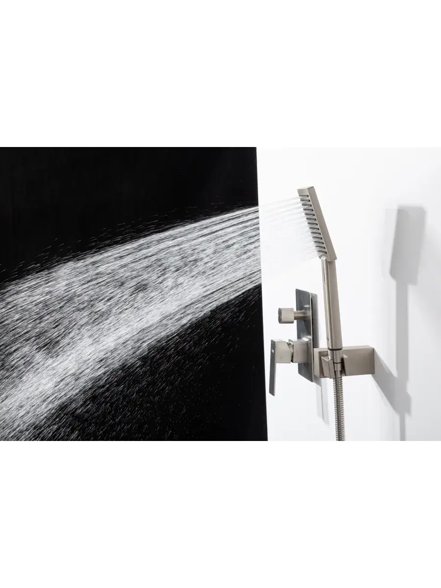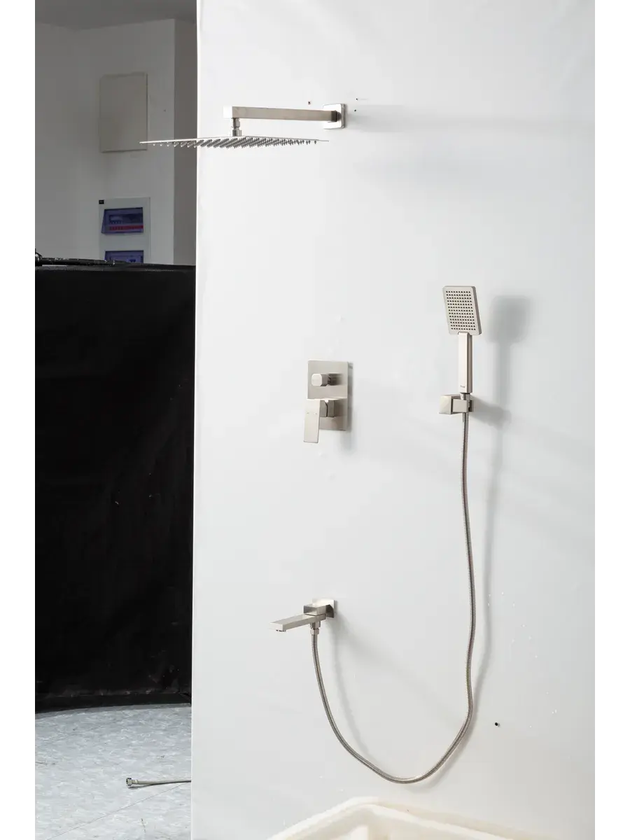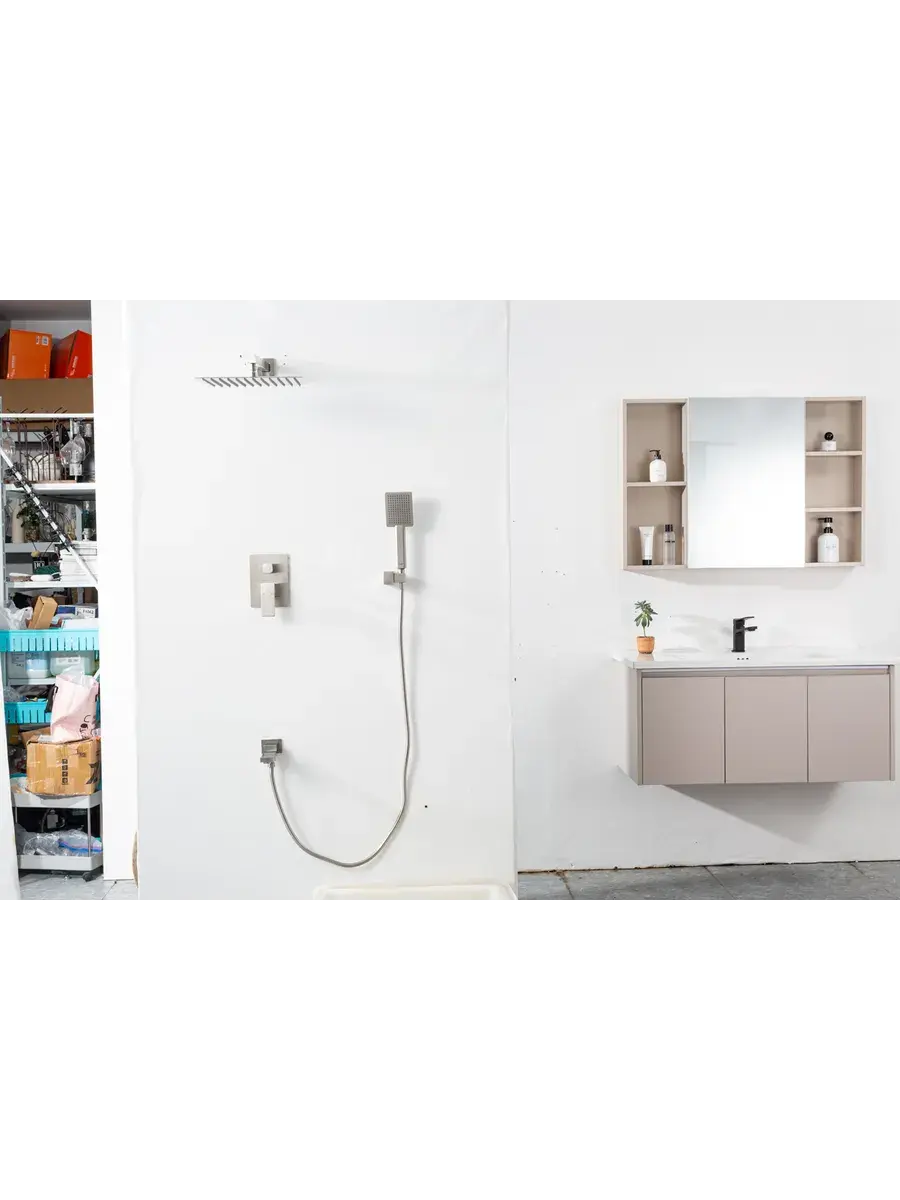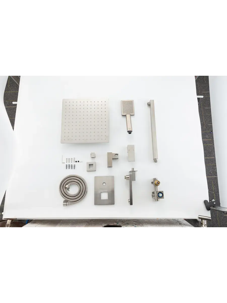 В набор входит весь необходимый комплект, включая шланг, смеситель, тропическую лейку, ручную лейку, крепежные элементы, инструкцию по установке и гарантии. Это делает монтаж системы F71802 быстрым и легким!