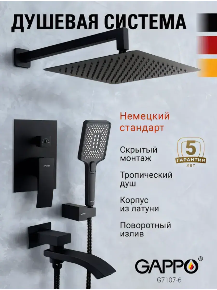 Погрузитесь в роскошь и комфорт с душевой системой GAPPO G7107-6. Этот встраиваемый душевой комплект из латуни с черным покрытием не только элегантно выглядит, но и обещает долговечность и легкость в уходе. Смеситель с лейкой, изливом и тропическим душем создает идеальное сочетание функциональности и стиля. Ручной душ с длинным шлангом обеспечивает удобство использования. Установка на стену проста, а возможность регулировать расположение элементов позволяет настроить систему под свои предпочтения. Откройте для себя роскошь и качество бренда GAPPO из Китая с этой душевой системой в черном цвете.