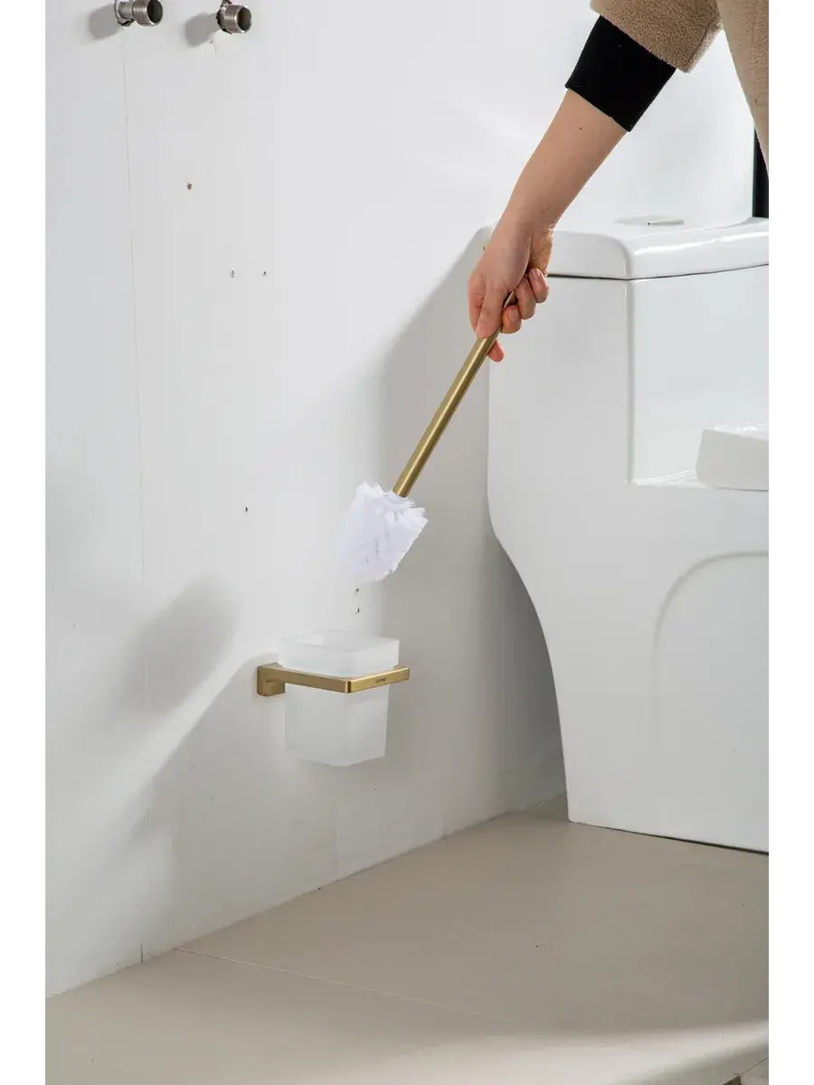 Ёршик оснащен пластиковой щеткой, которая обеспечивает эффективное и бережное очищение унитаза от загрязнений. Металлическая рукоятка гарантирует прочность и долговечность изделия, а стеклянная подставка с квадратной формой и матированным стеклом придает аксессуару изысканный вид.