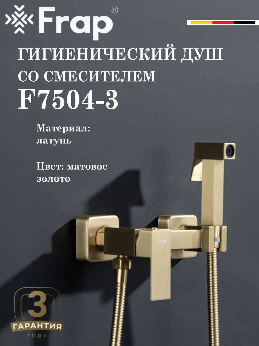 Смеситель с гигиеническим душем Frap F7504-3, прибор имеет одну рукоять чтобы регулировать напор воды. Настенный смеситель – это традиционный вариант, который в наши дни наиболее часто ставится в ванной. Помимо излива такие модели могут оснащаться отдельным выходом на душевой шланг. Современные приборы – это объединение традиционных конструкционных решений и одновременно с этим необычного и смелого оформления. Такая сантехника прекрасно подойдет для тех людей, кто хочет шагать в ногу с нашим временем. Материал прибора - латунь, проверенный временем красивый материал, обеспечивающий идеальное нанесение хромированного покрытия. Модель квадратной формы. Представленная модель не оснащена изливом. Представленный тип смесителя имеет керамический картридж с диаметром 25 миллиметров. Смеситель отлично смешивает потоки холодной и горячей воды, а помимо этого наделен невысоки показателем создаваемых шумов. В этом варианте предполагается, что установка смесителя производится на два отверстия, которые расположены в умывальнике или раковине. В комплекте идет, гарантийный талон, гигиенический душ , держатель лейки , душевой шланг.