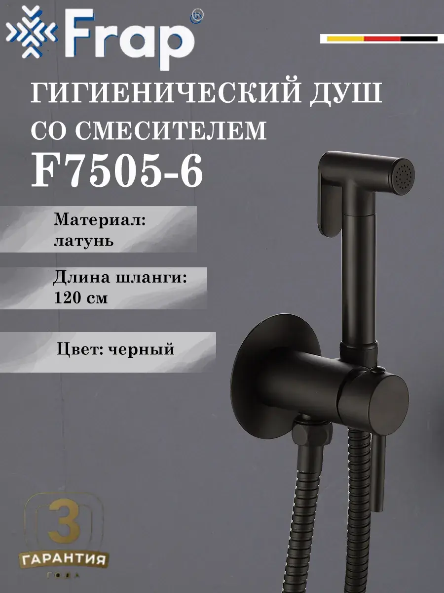 Качественный и современный смеситель с гигиеническим душем Frap F7505-6, у лейки для биде одна рукоять для того, чтобы регулировать напор воды. Смеситель для биде устанавливается прямо внутрь стены, что позволит скрыть функциональные элементы, спрятать некоторые элементы монтажа. Латунная душевая лейка работает в одном режиме. Высокопрочный душевой шланг 1200 мм в оплетке двойного вальцевания с трубкой из синтетического каучука вращающийся на 360 градусов. Аэратор Neoperl гарантирует ровный и мягкий поток воды без брызг. Основной материал корпуса - латунь, проверенный временем материал, который обеспечивает идеальное напыление хромированного покрытия. Круглая форма душ для биде делает его оригинальным и аутентичным. Модель подобного типа подходит для кухни или ванной комнаты, оформленных в необычном стиле. ВАЖНО: после того, как вы завершите мытье, прибор к которому присоединяется шланг с лейкой, необходимо переводить в режим отключения от напора воды, то есть попросту выключать. Постоянное давление на стенки шланга способствует стремительному износу и очень сильно сокращает время его использования.