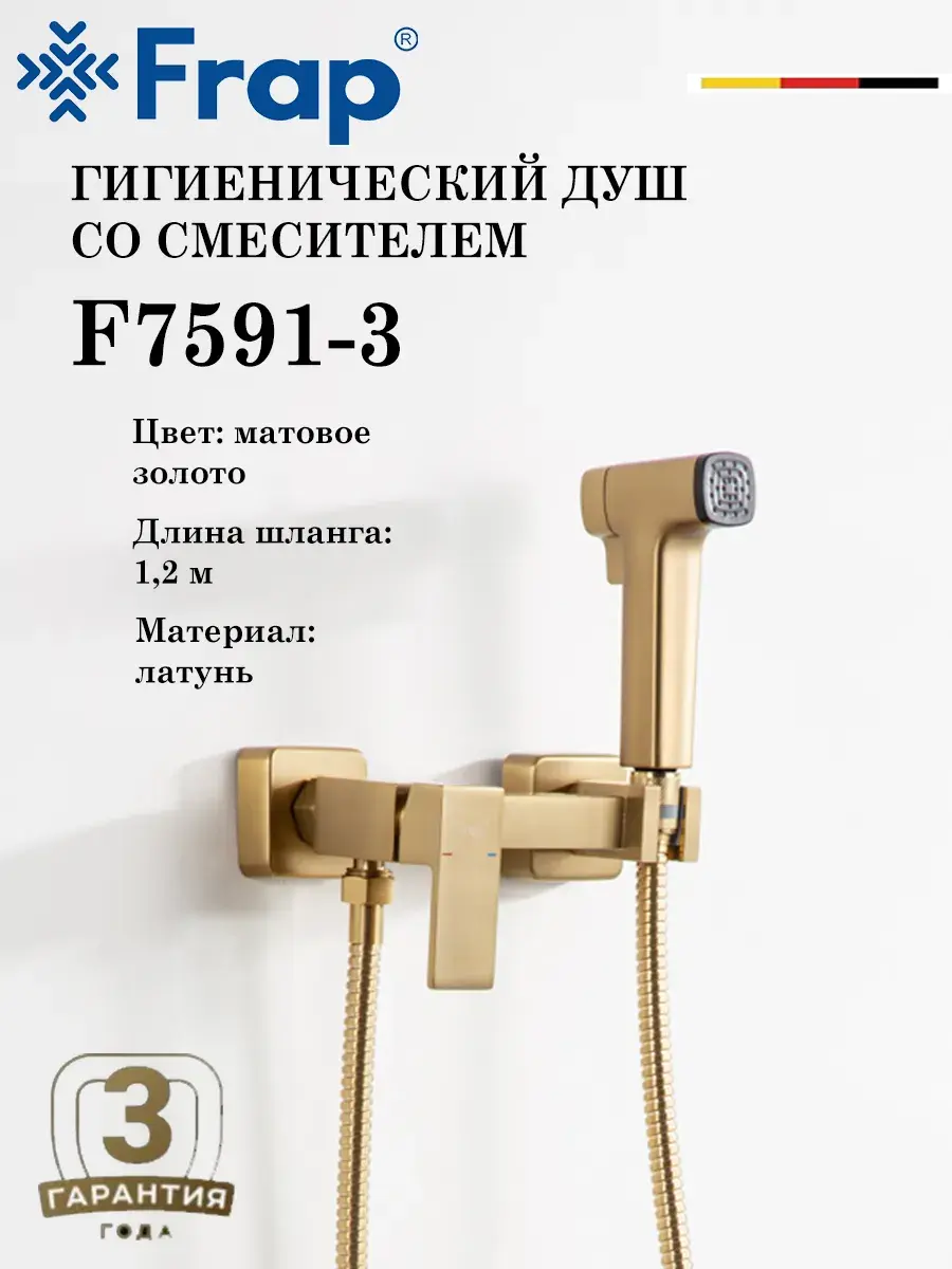 Смеситель с гигиеническим душем F7591-3 от бренда Frap – идеальное решение для вашего комфорта и гигиены.