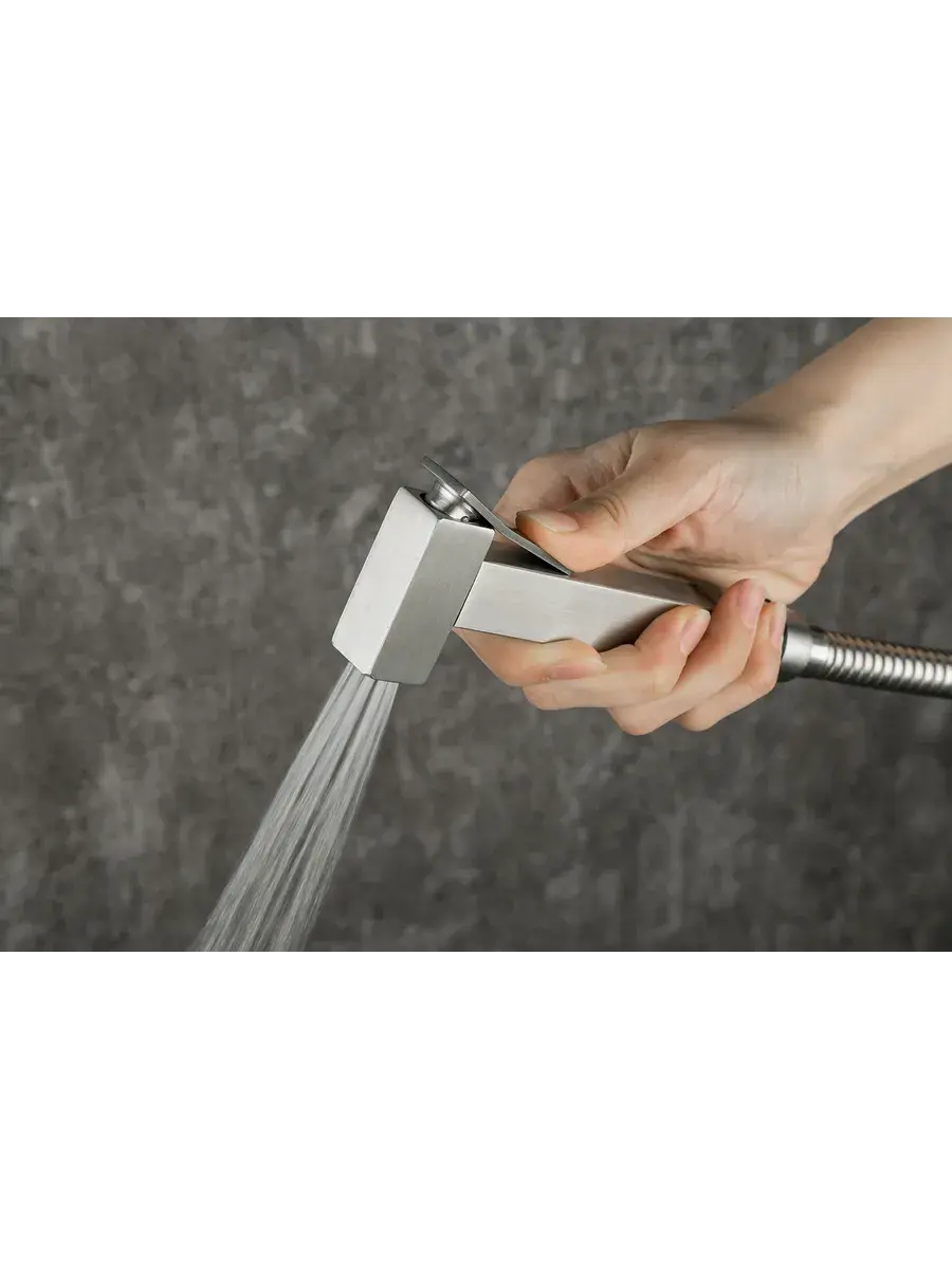 Качественный и современный смеситель с гигиеническим душем Gappo G7299-20, у лейки для биде одна рукоять для того, чтобы регулировать напор воды. Смеситель для биде устанавливается прямо внутрь стены, что позволит скрыть функциональные элементы, спрятать некоторые элементы монтажа. Латунная душевая лейка работает в одном режиме. Высокопрочный душевой шланг 1200 мм в оплетке двойного вальцевания с трубкой из синтетического каучука вращающийся на 360 градусов. Аэратор Neoperl гарантирует ровный и мягкий поток воды без брызг. Основной материал корпуса - латунь, проверенный временем материал, который обеспечивает идеальное напыление хромированного покрытия. Квадратная форма душ для биде делает его оригинальным и аутентичным. Модель подобного типа подходит для кухни или ванной комнаты, оформленных в необычном стиле. ВАЖНО: после того, как вы завершите мытье, прибор к которому присоединяется шланг с лейкой, необходимо переводить в режим отключения от напора воды, то есть попросту выключать. Постоянное давление на стенки шланга способствует стремительному износу и очень сильно сокращает время его использования.