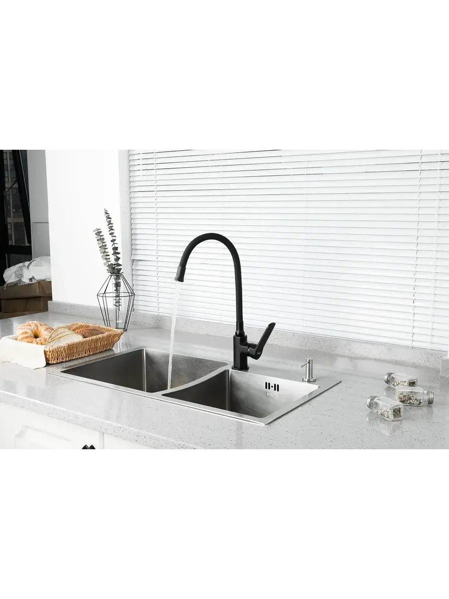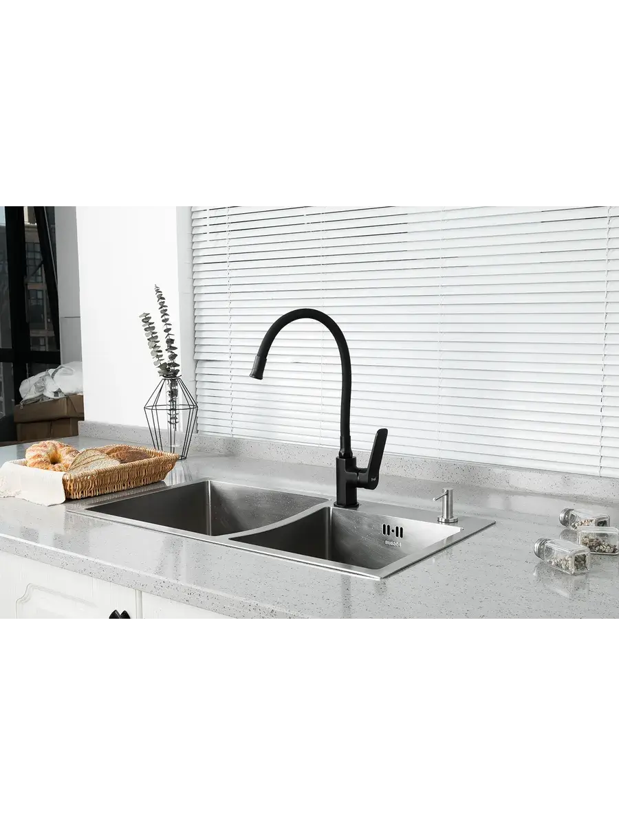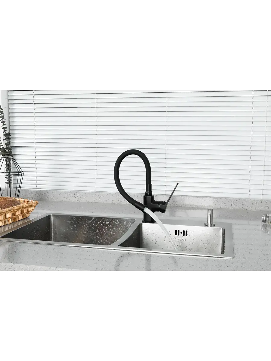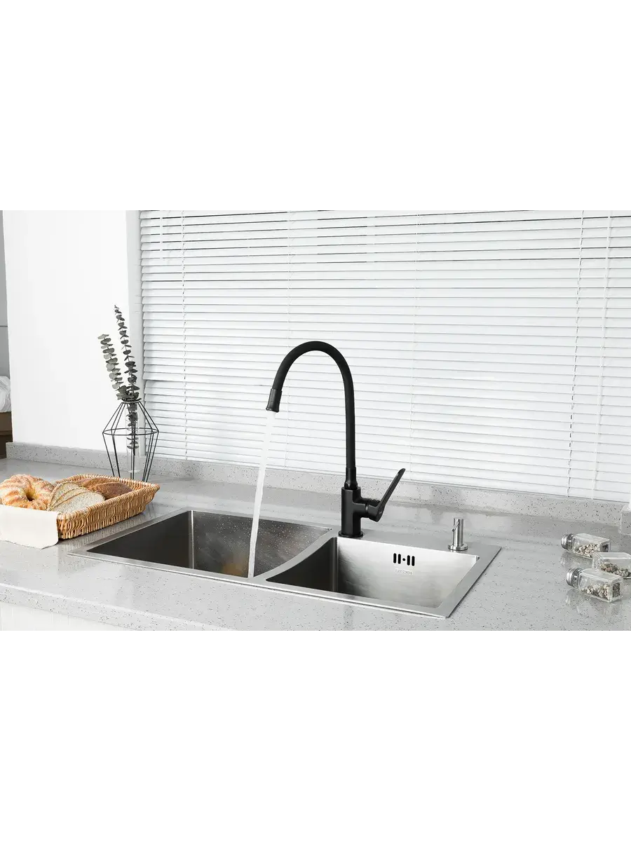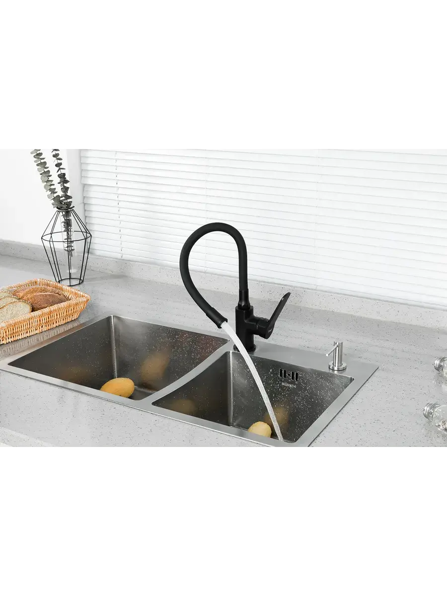 Кран для кухни с гибким изливом Frap F4462 отличается стильным дизайном и функциональностью. Смеситель для кухни гибкий изготовлен из латуни и эластичного силикона черного цвета. Он имеет удобную форму рукоятки смесителя с плавным переключением. Благодаря гибкому изливу (носику) этот смеситель универсален и подходит к кухонным мойкам практически любых размеров и форм. Излив гнется в любую сторону, принимая в нужный момент подходящую форму, тем самым увеличивая зону работы смесителя. Керамический картридж обеспечивает точную настройку температуры и напора воды. Водосберегающая насадка на кран (аэратор) позволяет снизить расход воды в среднем на 40%, а в некоторых случаях до 70%. Смеситель на кухню черный Фрап станет современным и практичным элементом вашего дома. Гарантия на смеситель 3 года.