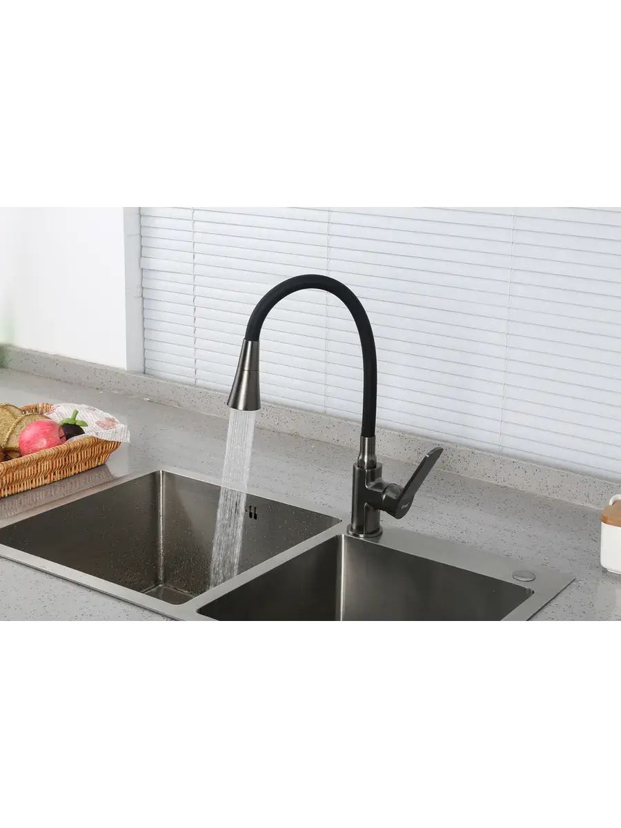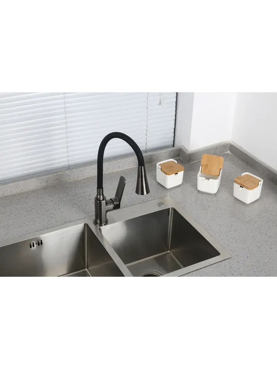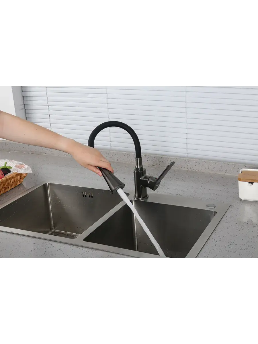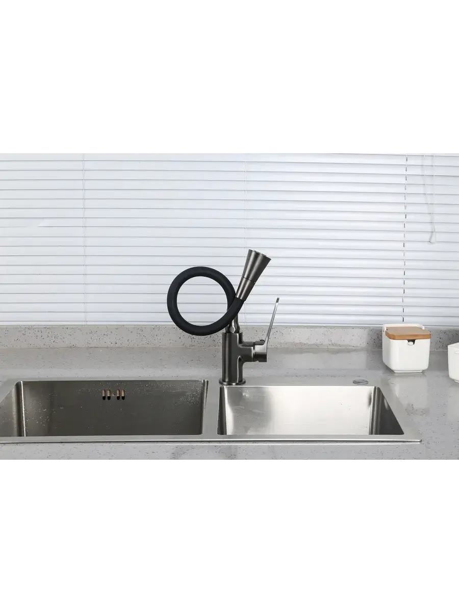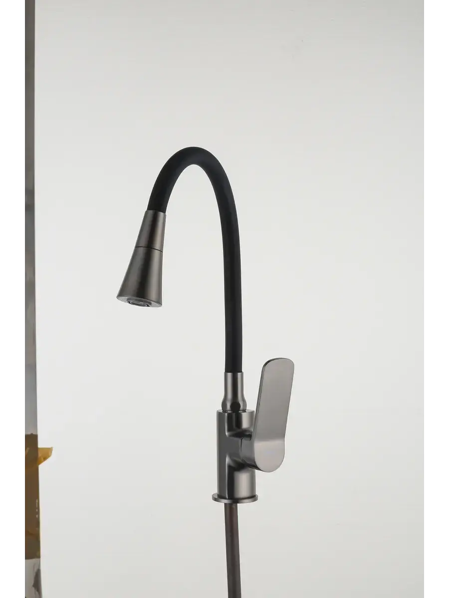 Кран для кухни с гибким изливом Frap F4462-9 отличается стильным дизайном и функциональностью. Смеситель для кухни гибкий изготовлен из латуни и эластичного силикона черного цвета. Он имеет удобную форму рукоятки смесителя с плавным переключением. Благодаря гибкому изливу (носику) этот смеситель универсален и подходит к кухонным мойкам практически любых размеров и форм. Излив гнется в любую сторону, принимая в нужный момент подходящую форму, тем самым увеличивая зону работы смесителя. Керамический картридж обеспечивает точную настройку температуры и напора воды. Водосберегающая насадка на кран (аэратор) позволяет снизить расход воды в среднем на 40%, а в некоторых случаях до 70%. Смеситель на кухню черный Фрап станет современным и практичным элементом вашего дома. Гарантия на смеситель 3 года.