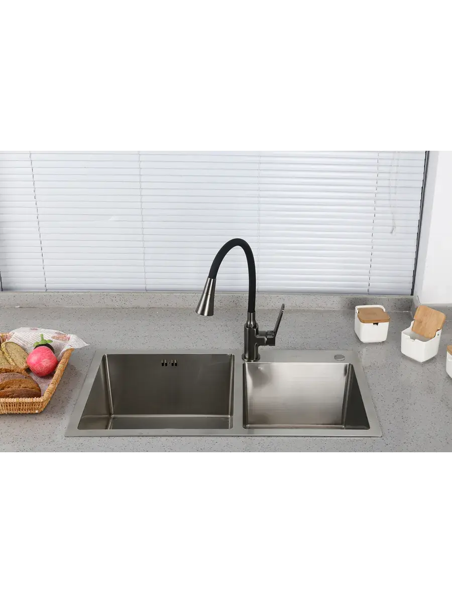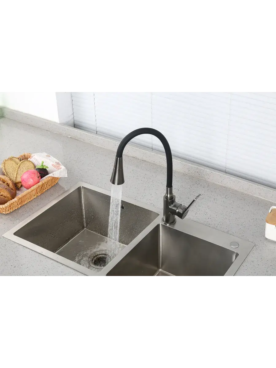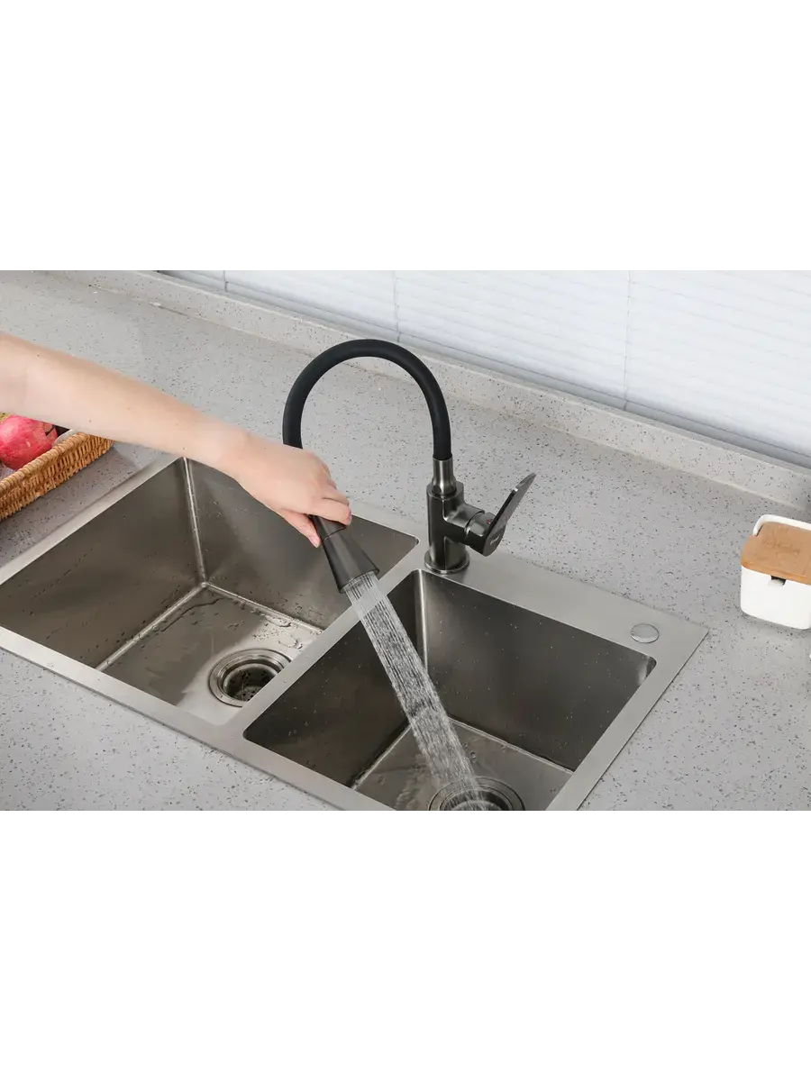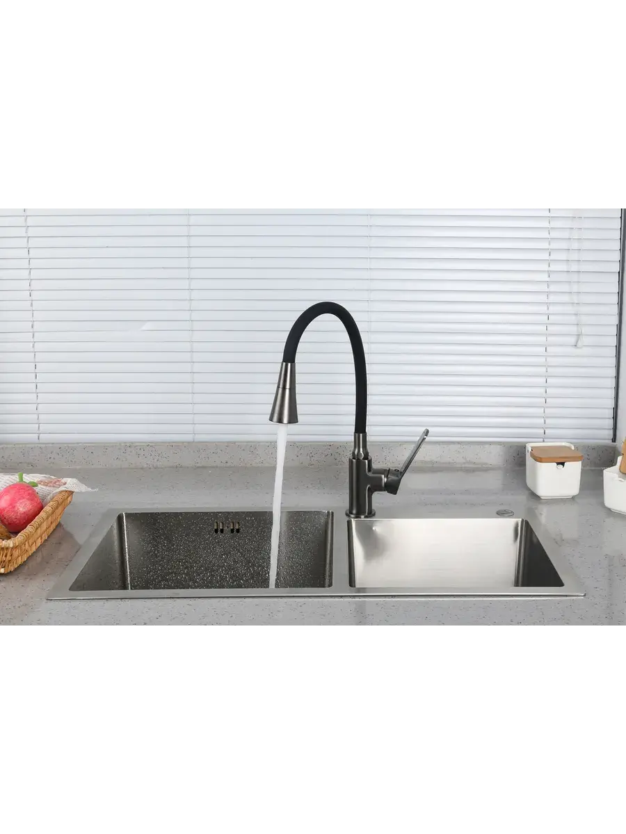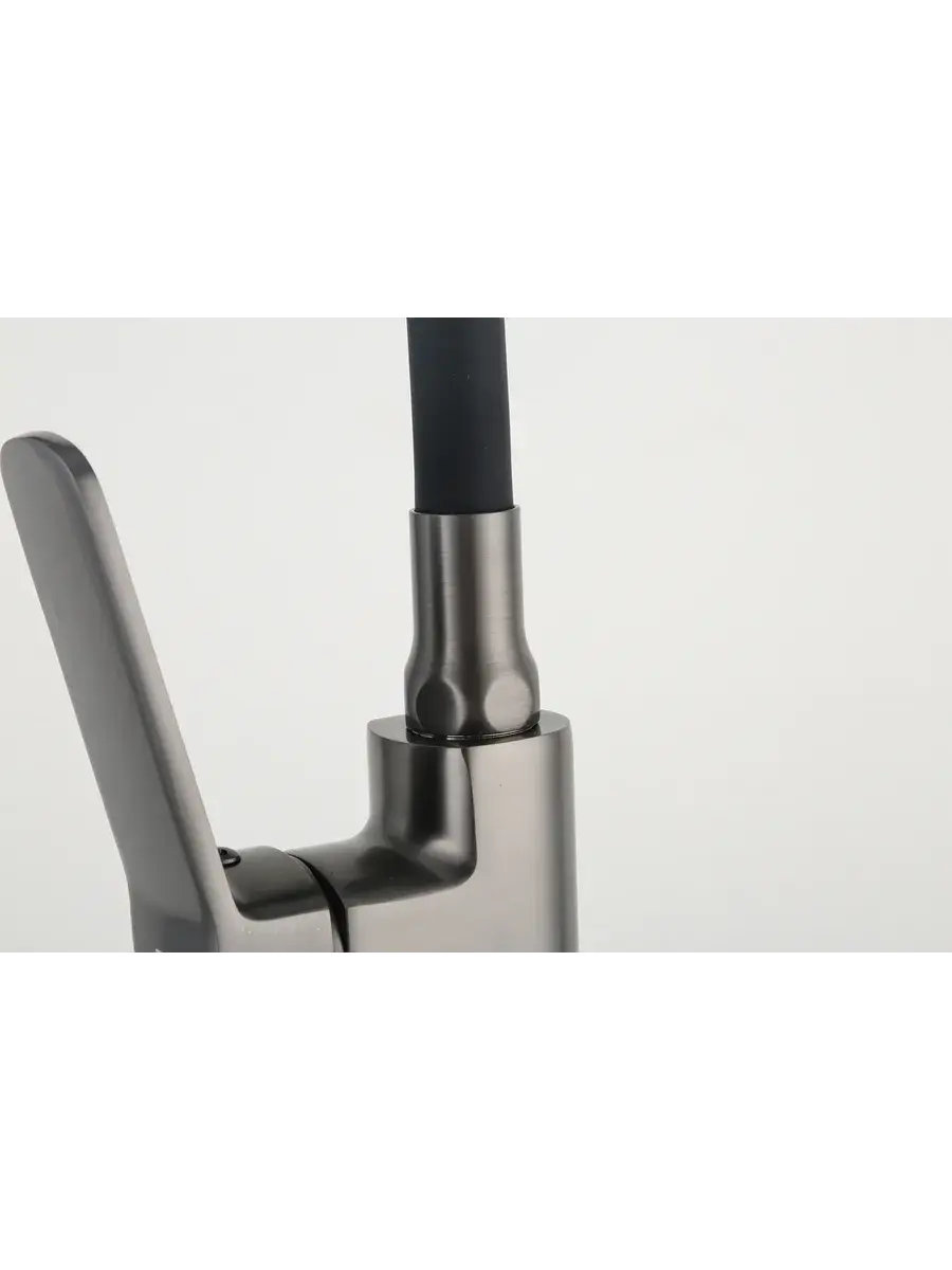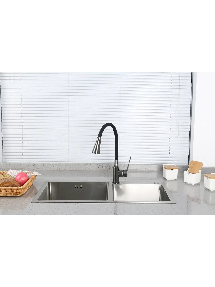Кран для кухни с гибким изливом Frap F4462-9 отличается стильным дизайном и функциональностью. Смеситель для кухни гибкий изготовлен из латуни и эластичного силикона черного цвета. Он имеет удобную форму рукоятки смесителя с плавным переключением. Благодаря гибкому изливу (носику) этот смеситель универсален и подходит к кухонным мойкам практически любых размеров и форм. Излив гнется в любую сторону, принимая в нужный момент подходящую форму, тем самым увеличивая зону работы смесителя. Керамический картридж обеспечивает точную настройку температуры и напора воды. Водосберегающая насадка на кран (аэратор) позволяет снизить расход воды в среднем на 40%, а в некоторых случаях до 70%. Смеситель на кухню черный Фрап станет современным и практичным элементом вашего дома. Гарантия на смеситель 3 года.